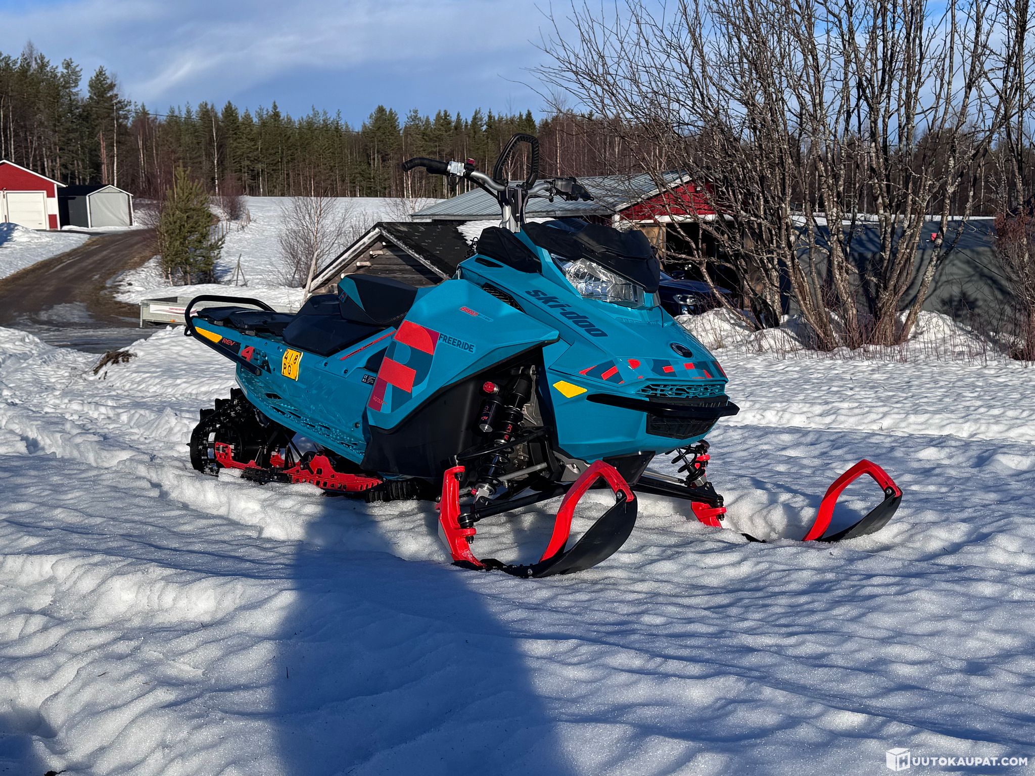 146 puolipitkä vahvistettu alusta soveltuu reitille ja sen ulkopuolelle. Telapyöriä on sen verran ettei liukuja tarvii joka reissulla vaihtaa. Keulassa juuri huolletut iskarit, käynnistyksen hoitaa startti uudella akulla. Telatunnelin päällä linkkukiinnikkeet lisävarusteille tai irroitettavalle roiskeläpälle. Pohjapanssari ja kahvanlämmitimet. Mukaan vararemmi.