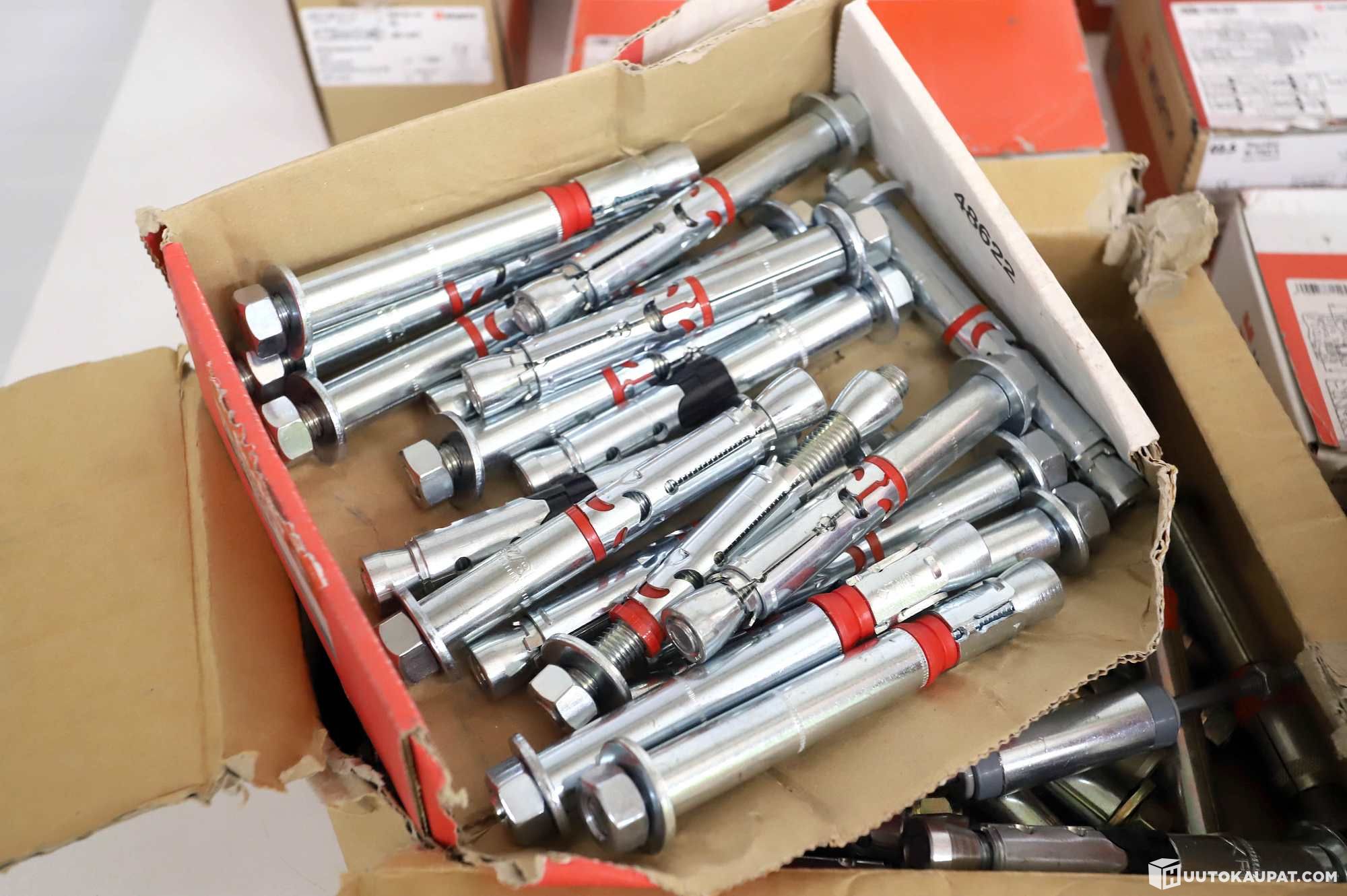 Suuri erä kiila-ankkureita, kipsilevyankkureita, yms kiinnikkeitä.