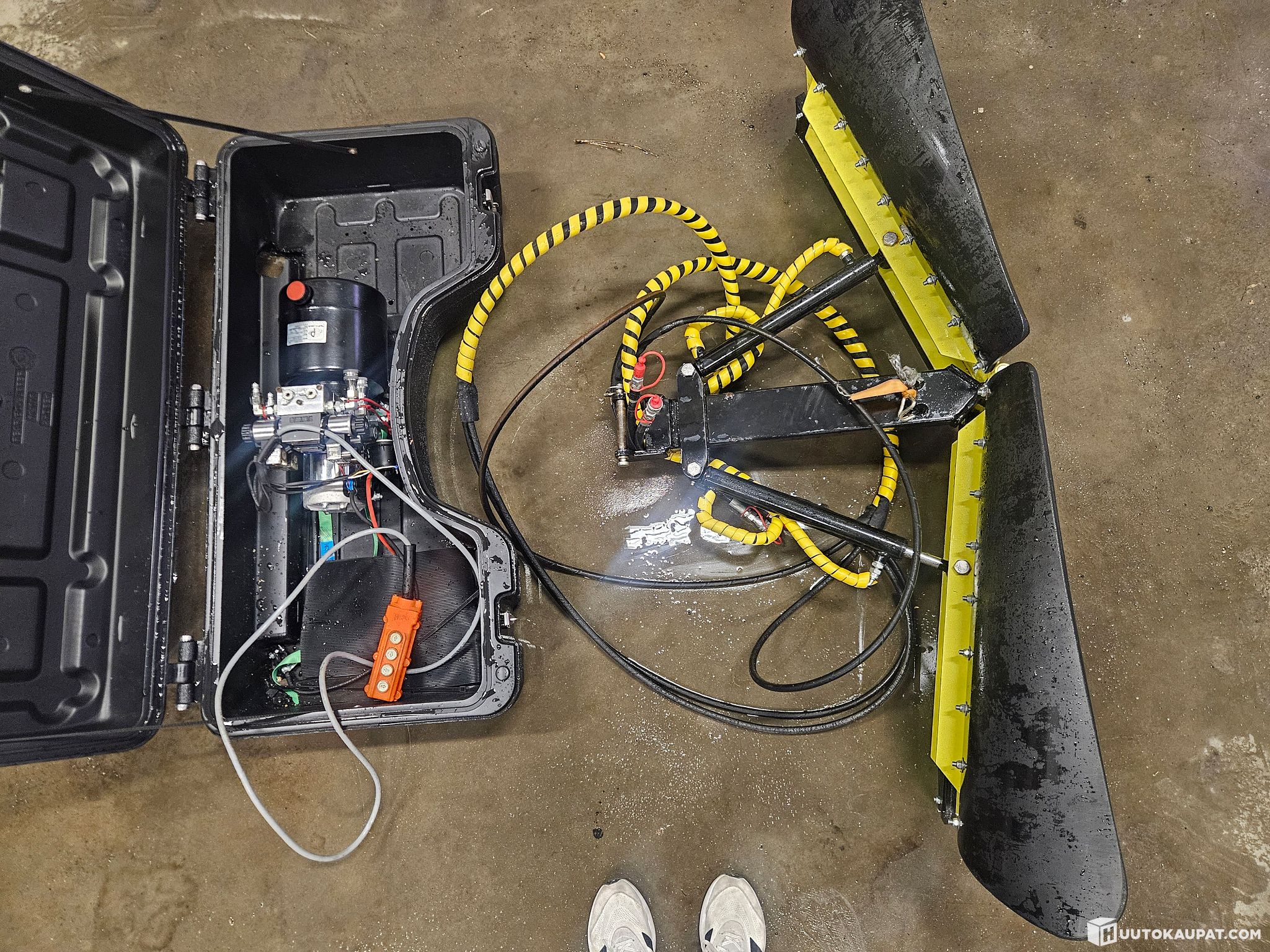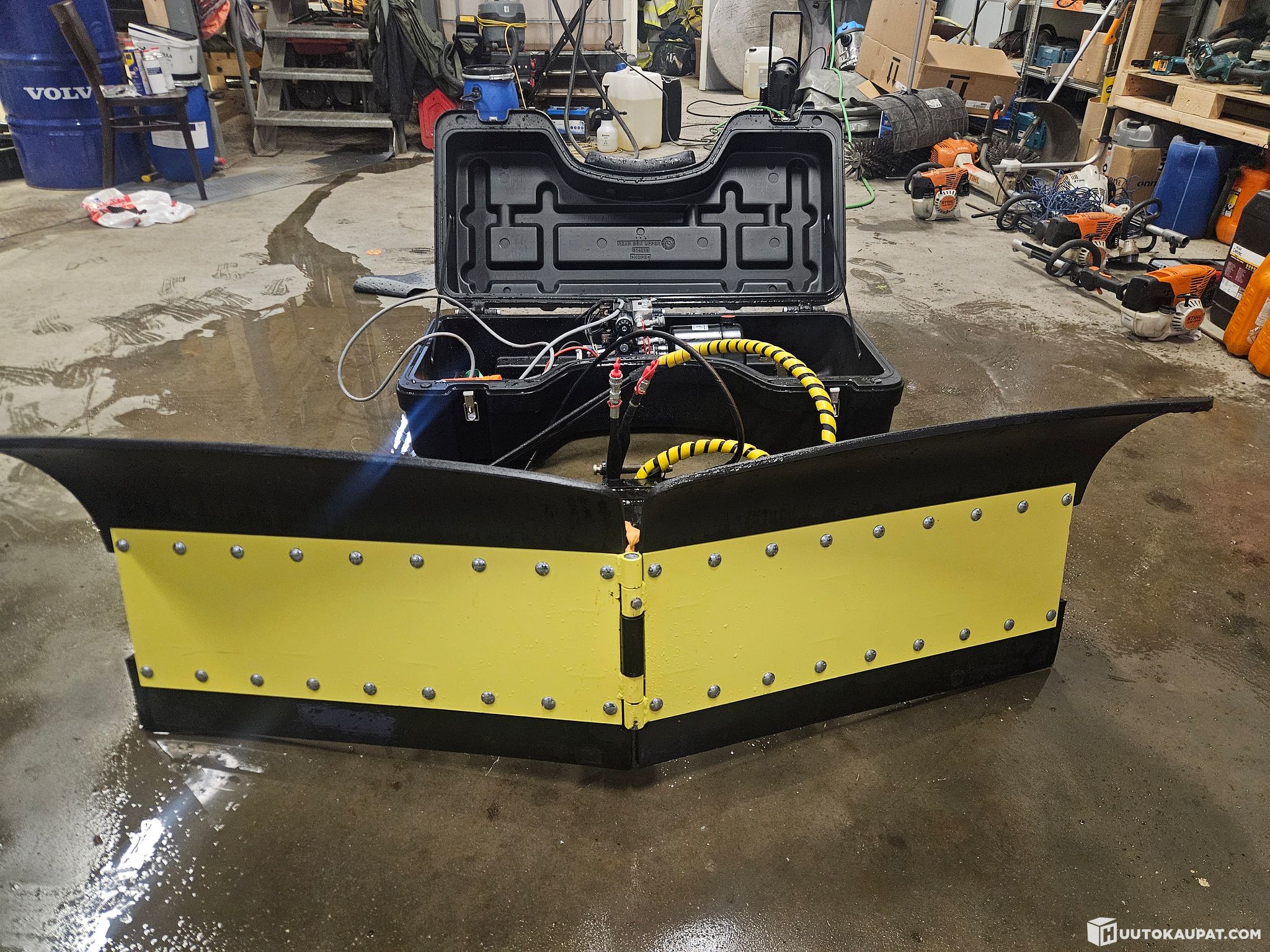 Tästä lähes uusi Hydraulinen v-aura mönkijään! On ollut kiinni tgb-merkkisessä mönkijässä, mutta peräkoukkuun menevä kiinnike ei tule mukana. Mukaan saa myös akun (ei alkuperäinen vaan isompi) ja ylläpitolaturin. Lisätietoja laitteesta saa esimerkiksi Mönkijä Centerin nettisivuilta www.monkijacenter.fi