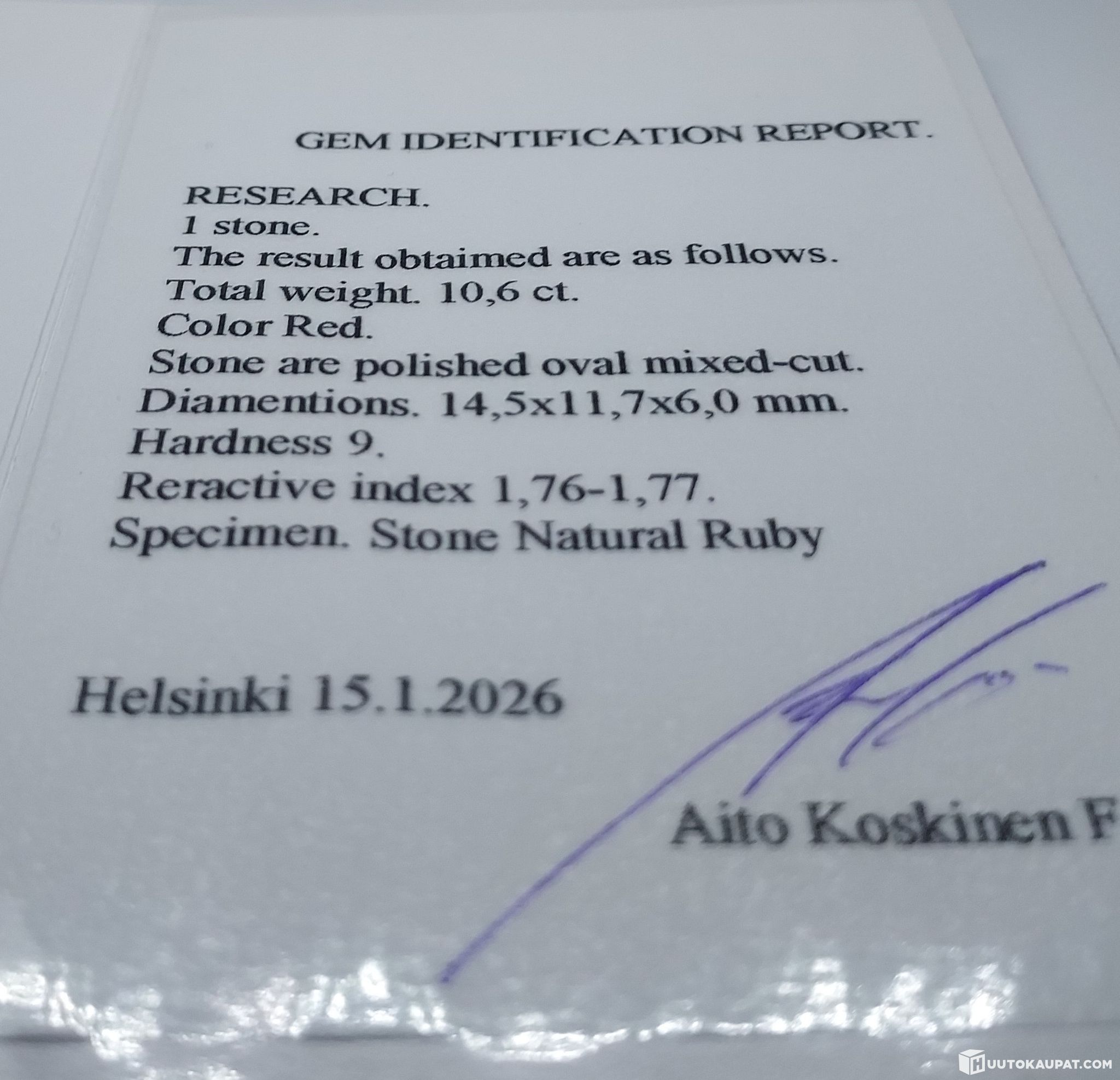 Mukana aitoustodistus.