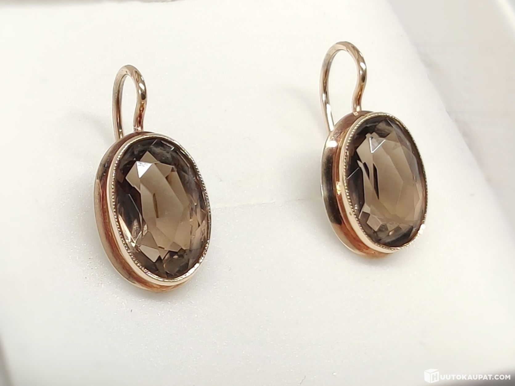 Kauniit kotimaiset savukvartsikorvakorut 585 14k kultaa.