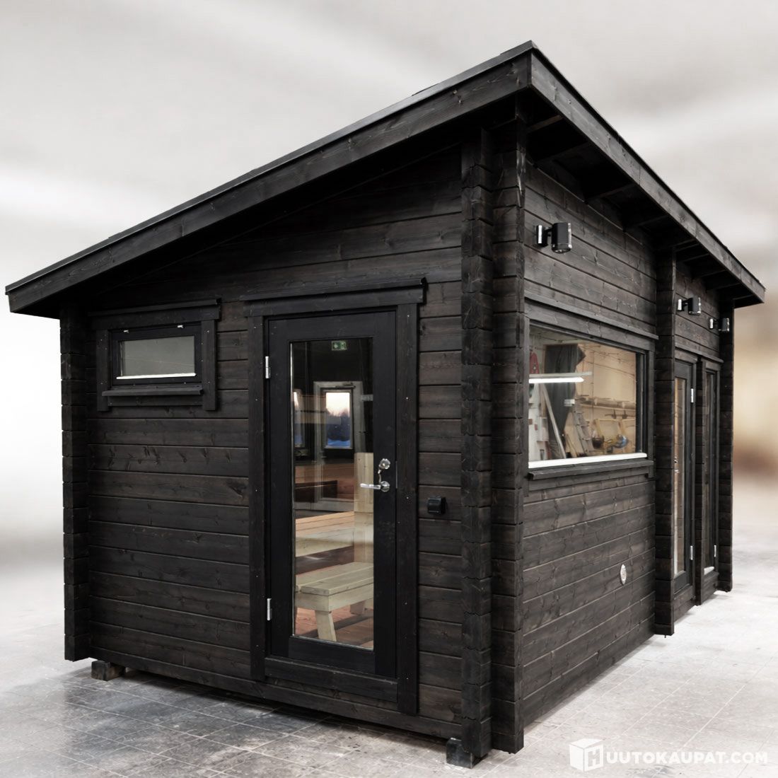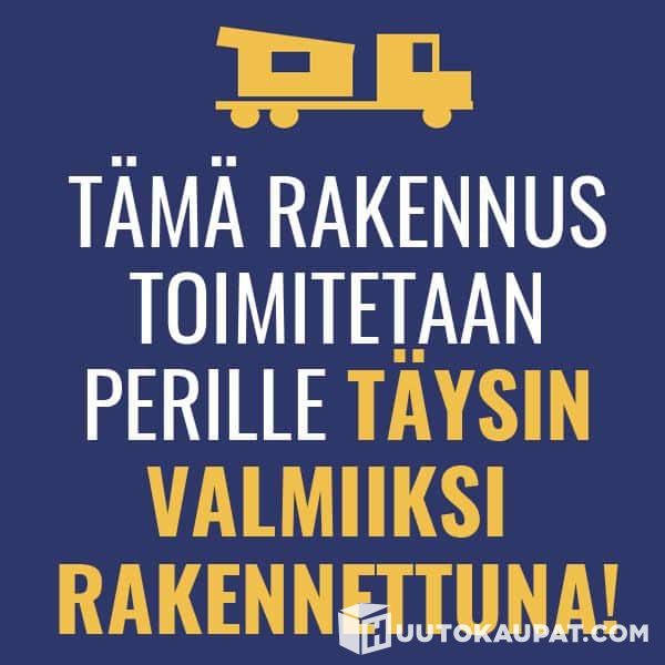 Kevätmessut järjestetään 26-29.3. 2026 ja tämä saunamökki on messuilla esiteltävänä muutaman päivän ja myydään tällä huutokaupalla messujen päätyttyä. Voidaan toimittaa suoraan messuilta asiakkaalle 30-31.3.2026. Mikäli ostajalla pohjat ei ole valmiina, niin tämän saunamökin voi helposti laskea väliaikaisille perustuksille. Mahdollisuus myös säilytykseen Smartian pihalla, jolloin toimitus voidaan sopia myöhemmäksi ajankohdaksi.