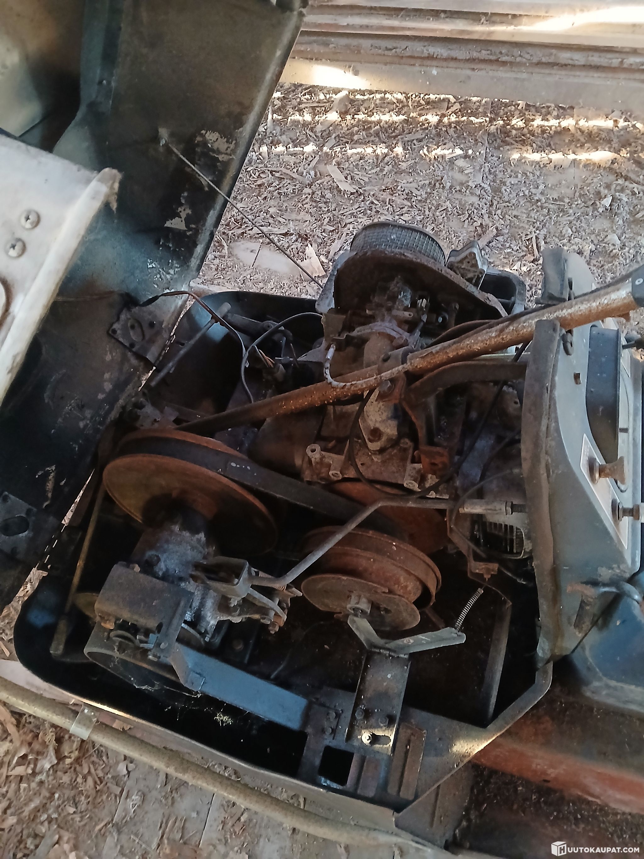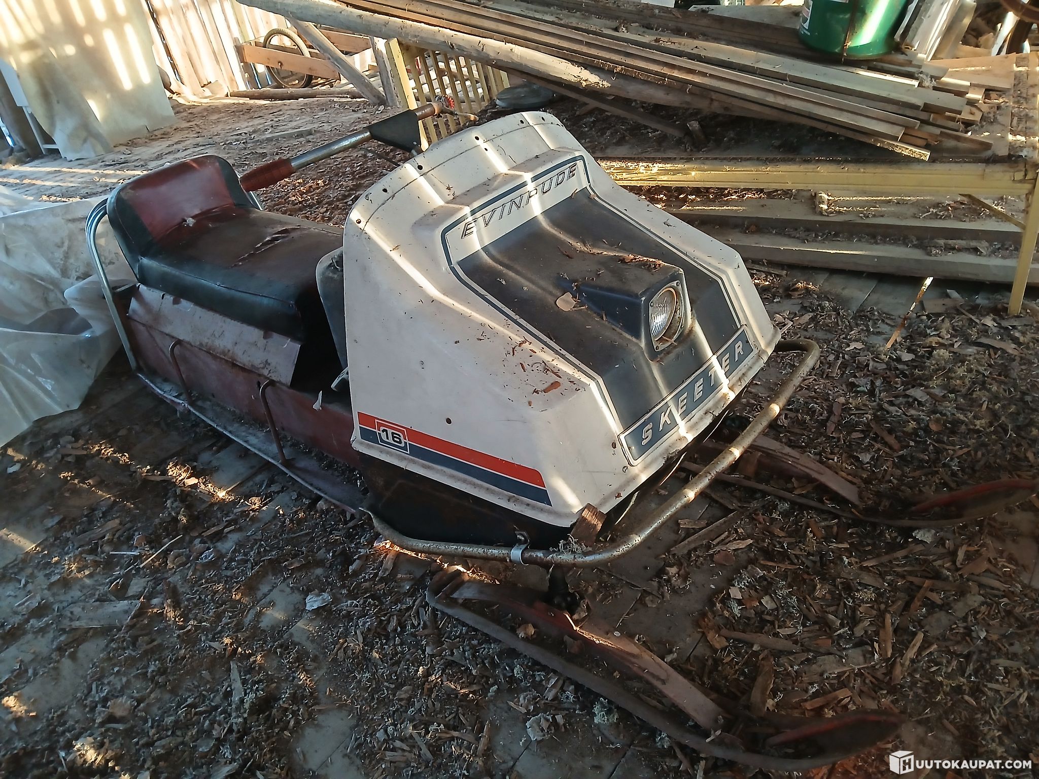 Myydään latolöytö Evinrude skeeter Boxerkoneella, jossa ainakin hihnanpäästä pyöritettynä oli vielä puristuksiakin jäljellä.