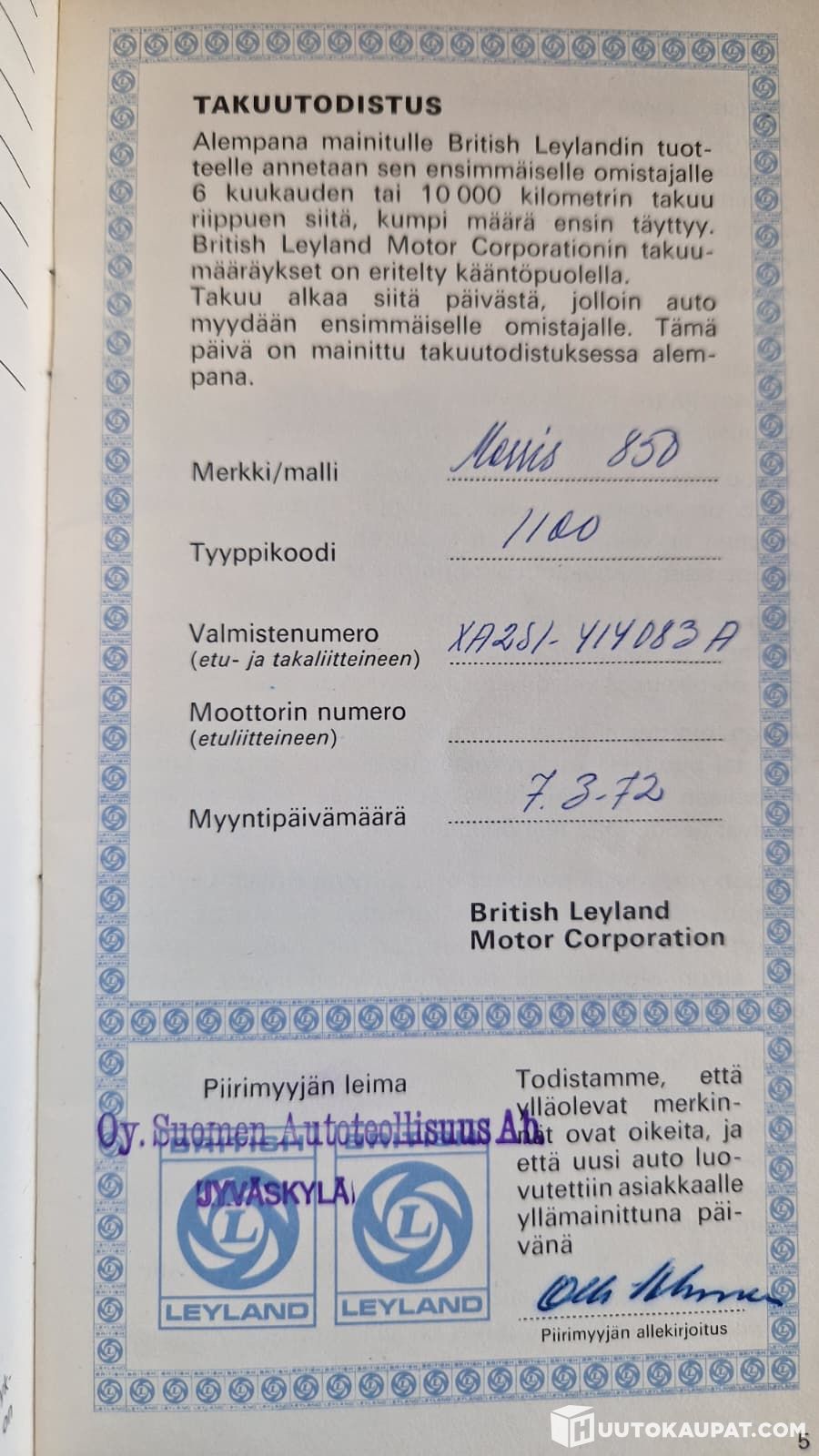 Myyty uutena Suomessa (Oy Suomen Autoteollisuus Ab)