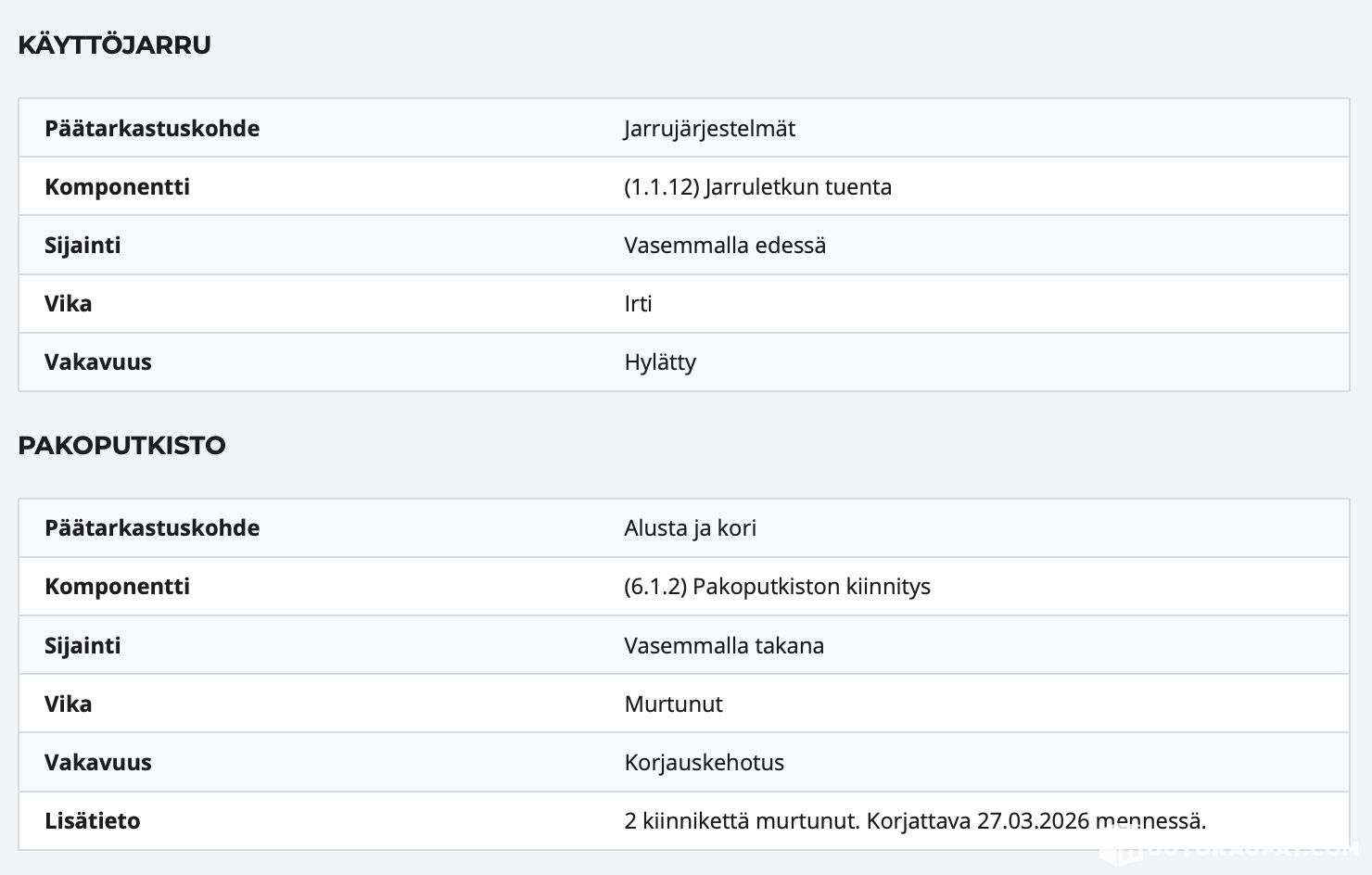 Katsastus hylätty, katso vikalista kuvista!