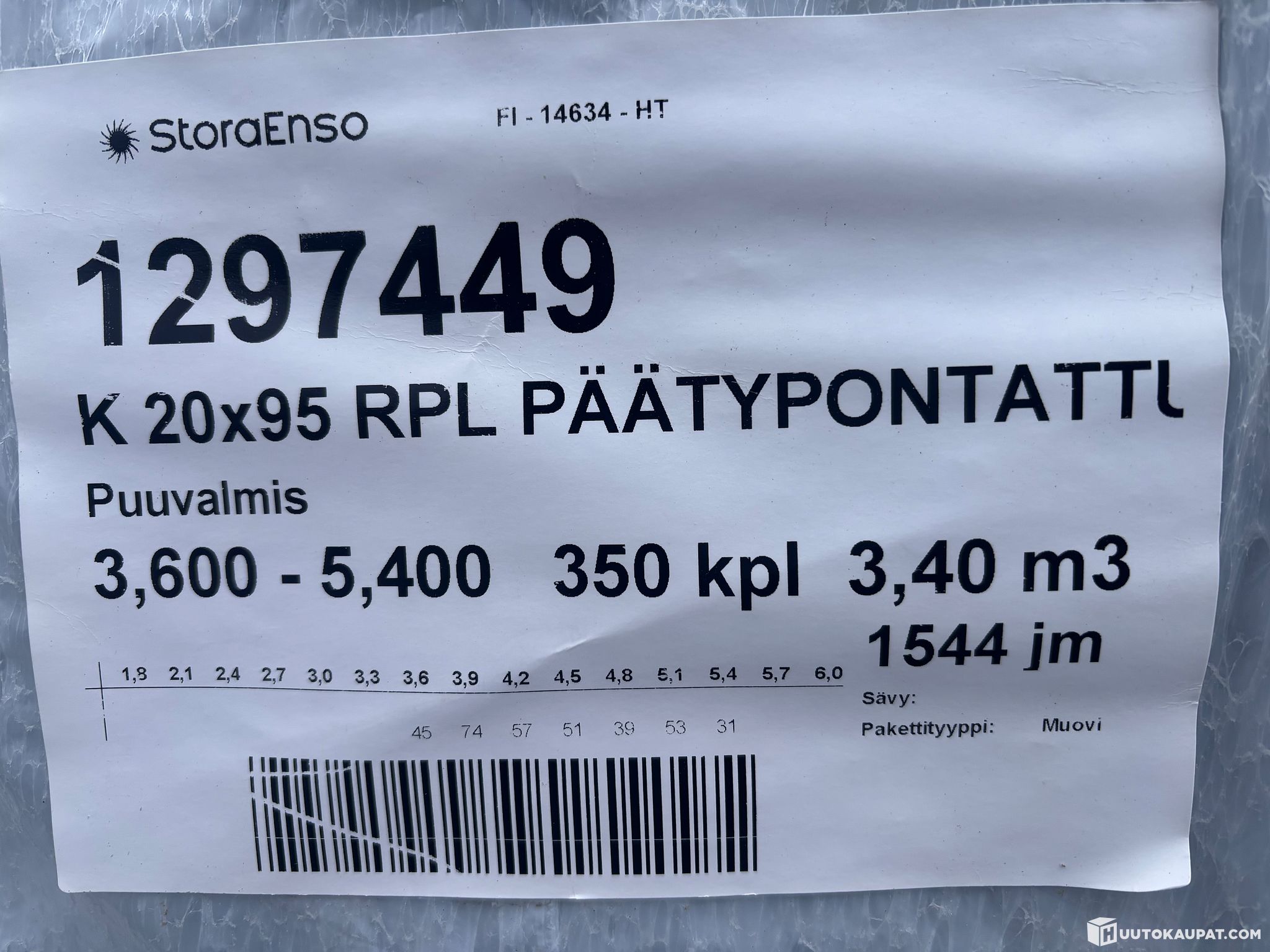 Puutavara höylätty ponttilauta 20 x 95 RPL 2628,3 m paketit 1297449 ja 1299250, Alavus
