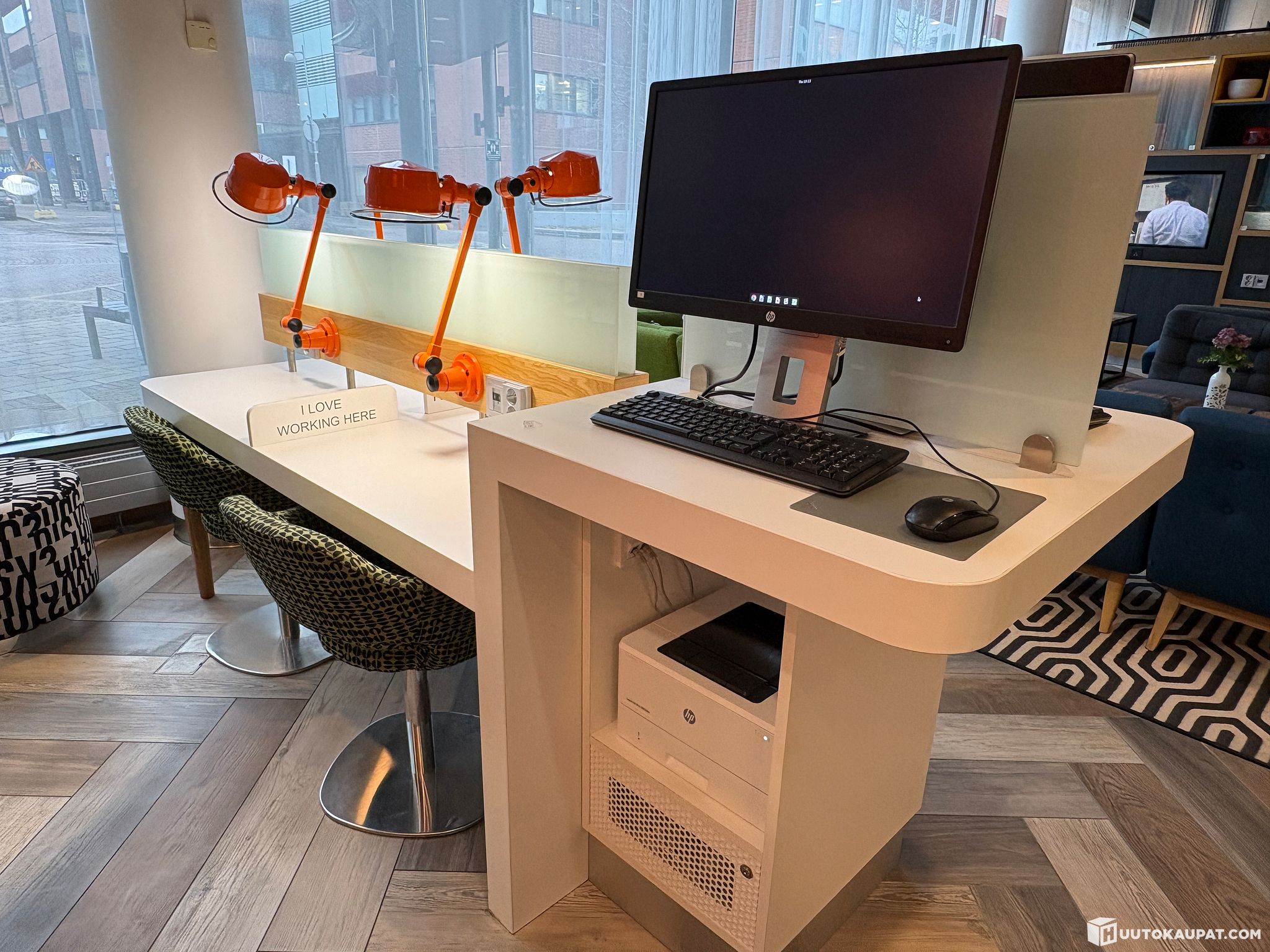 HUOM. Ei sisällä kuvan tietokoneita ja tulostinta.