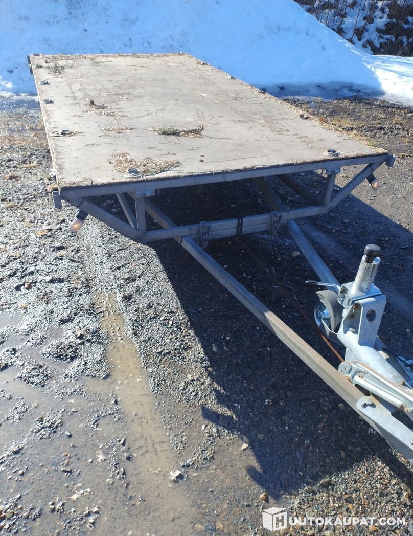 360*180cm tasainen lavettikärry kipillä. Avattavat ja kevyet irroitettavat laidat/tolpat. Lavan pohjassa 12kpl sidonta lenkkejä sekä lisää kärryn rungossa. Kahdet hyvät renkaat ( talveksi uudet nastat ) peltivanteilla. Uusi iso nokkapyörä, hyvät valot. Tästä hyvä kelkkakärry tai rakentajalle kappaletavaran kuljetukseen sopiva kärry.