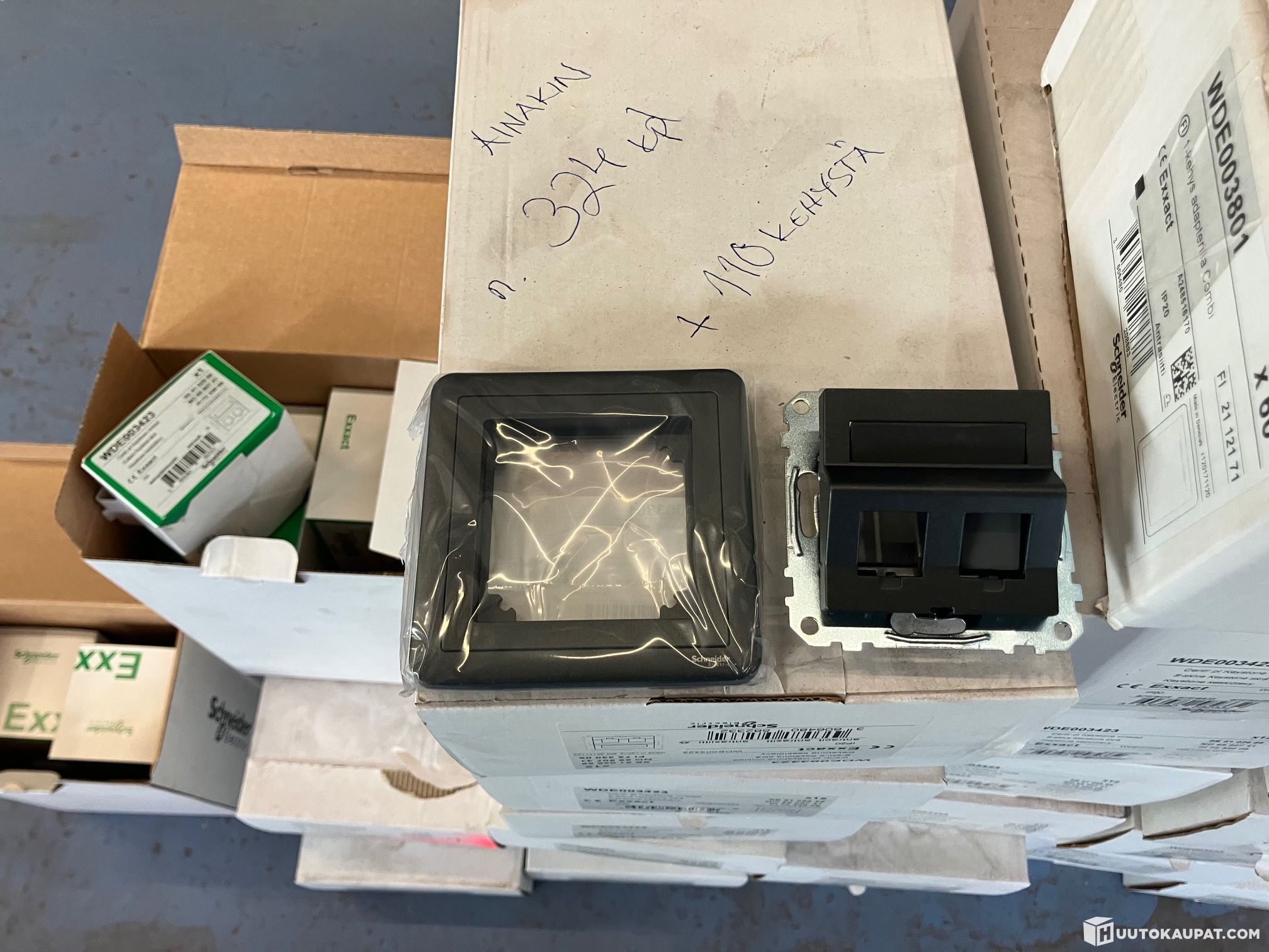 Exxact keystone etulevyjä ainakin 324 kappaletta ja 110 kpl kehyksiä. Pääsääntöisesti antrasiitin värisiä.
