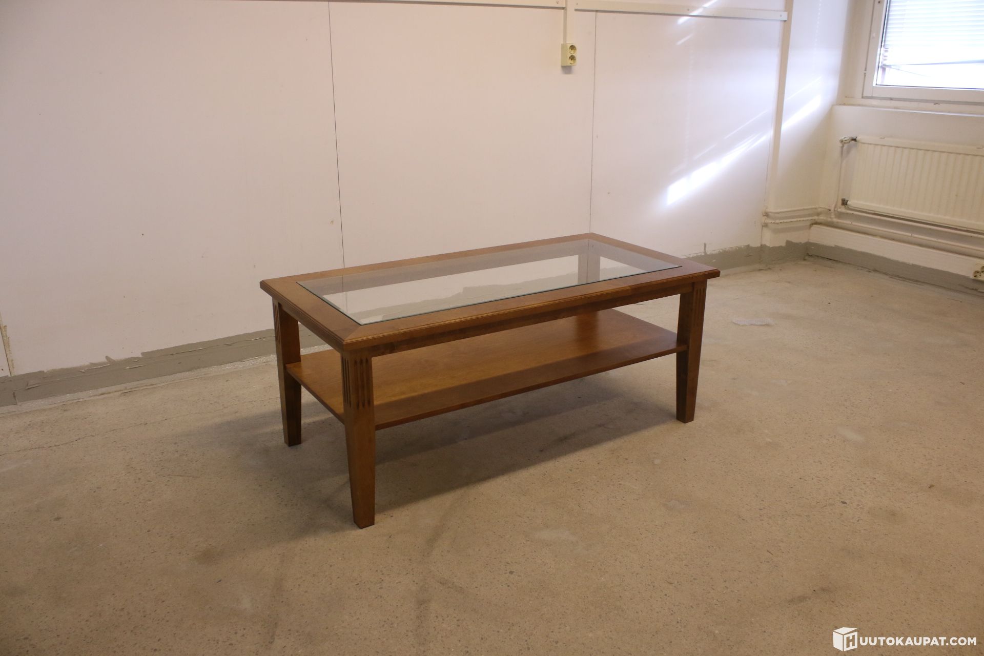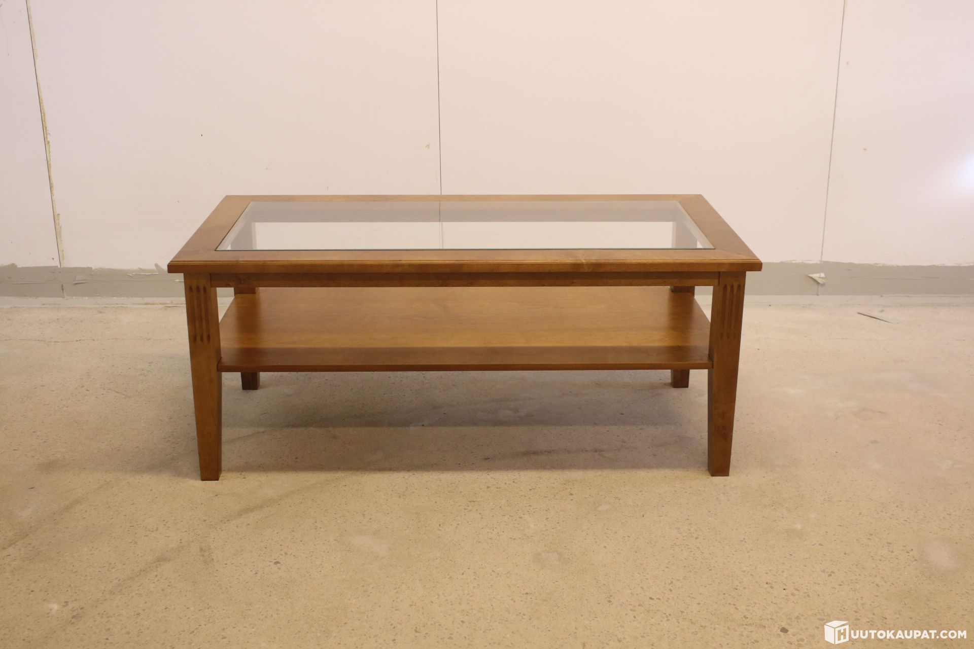 Tyylikäs sohvapöytä irroitettavalla lasikannella ja välitasolla.