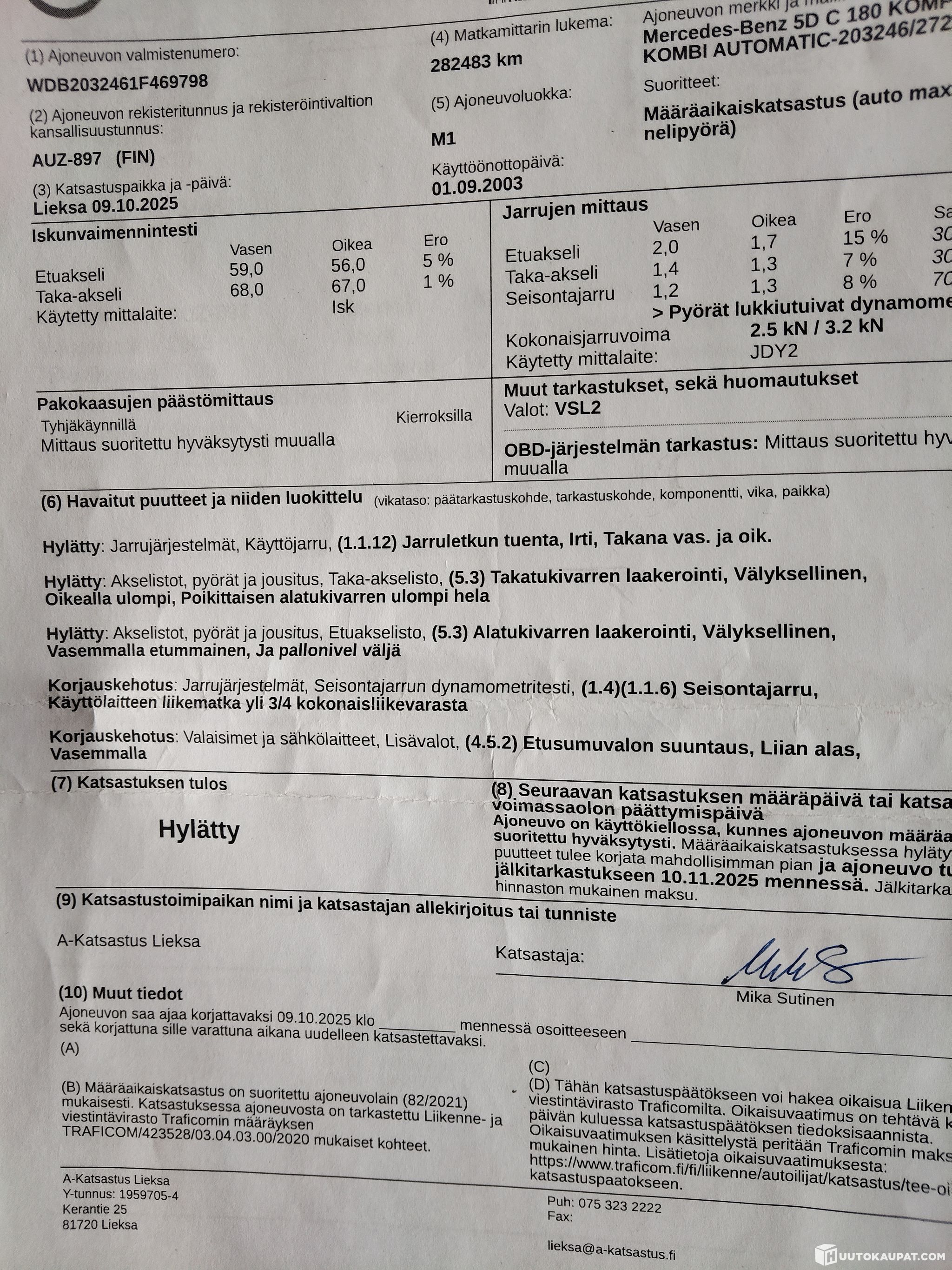 Määräaikaiskatsastus 9.10.2025 (hylätty)