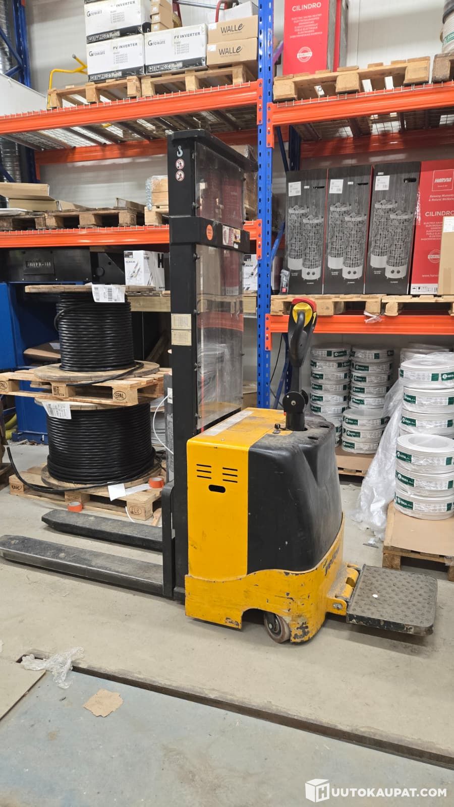 sähkökäyttöinen pinoamistrukki,Nostaa 3m korkeuteen, max 1000Kg.
