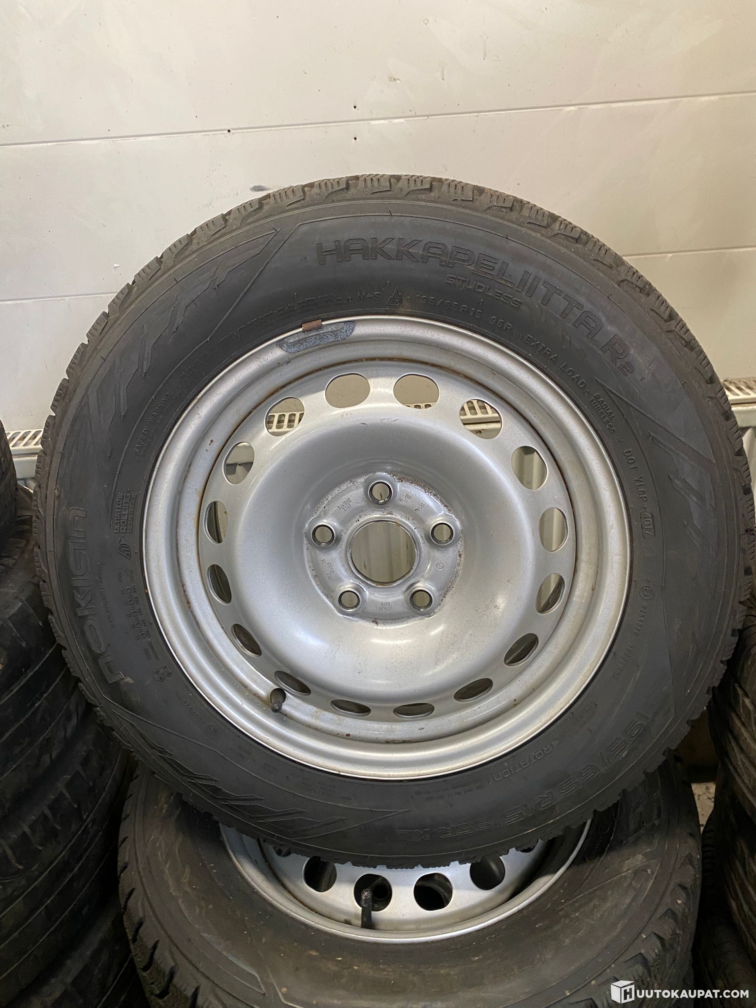 Vw caddyn kirkarenkaat vanteilla Hakkapeliitta R2 dot 4017 7-8mm pintaa 195/65R15 Vanteessa osanumero 2K0601027B