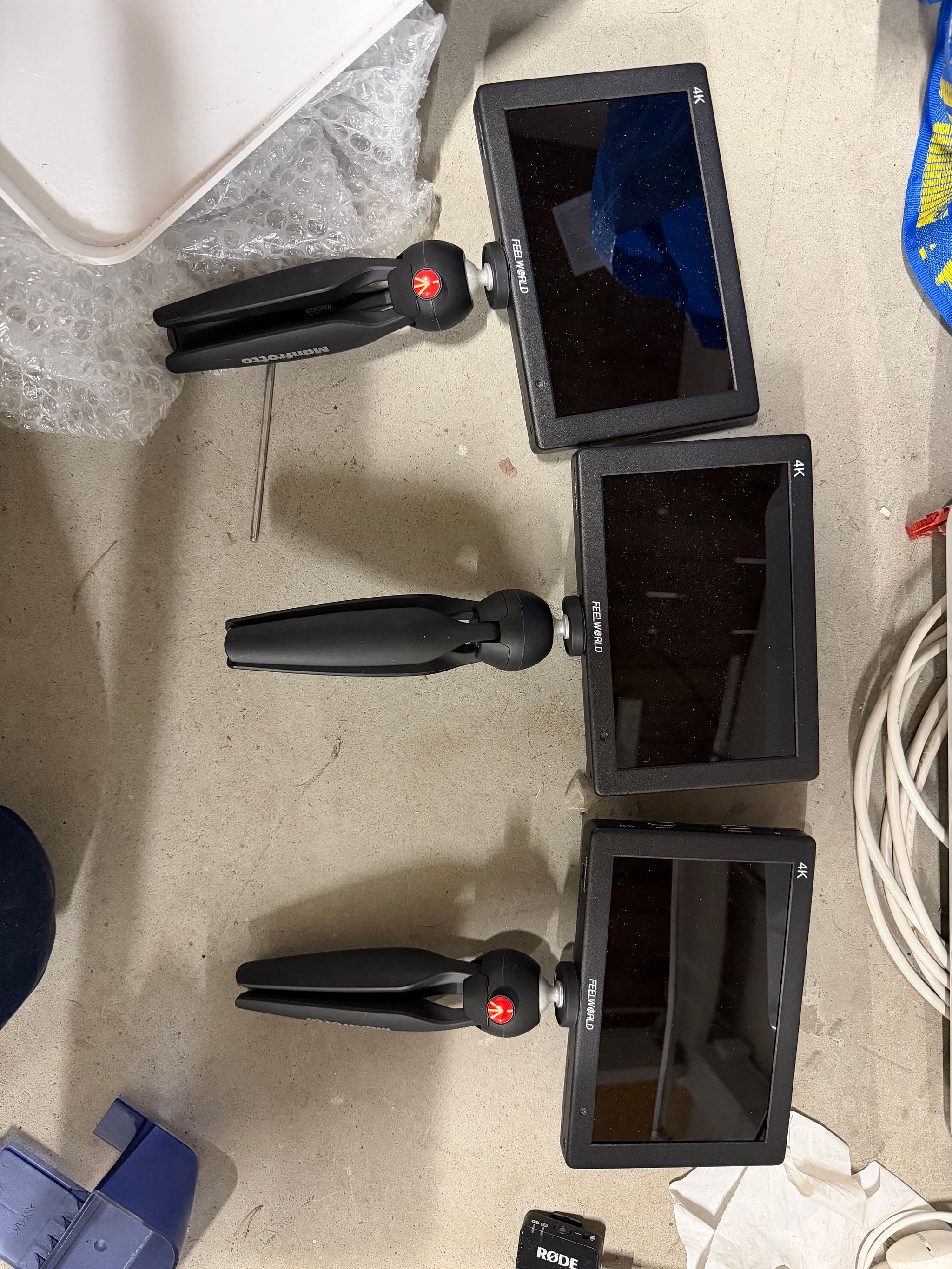 3kpl Freeworld 4k monitor ja 2kpl Atem minipro + muuta elektroniikkaa. Helsinki Design school oy konkurssipesä, Järvenpää