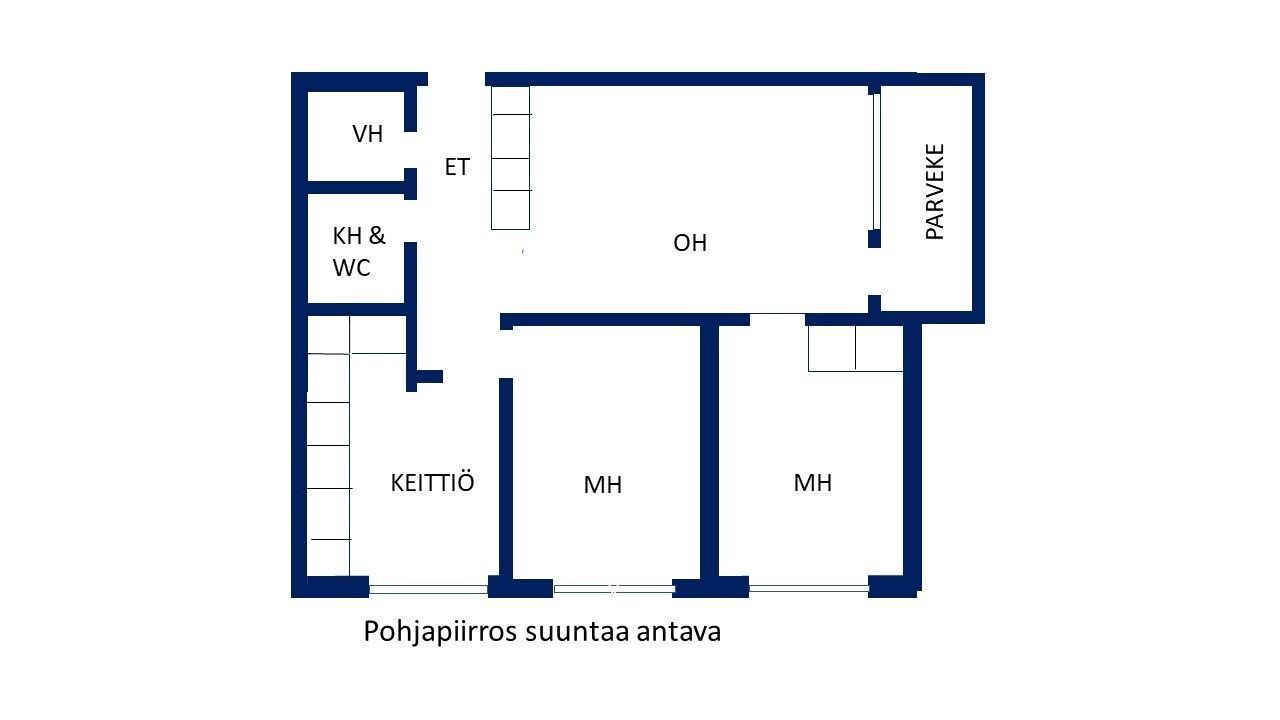 Valoisa 63 m²:n kulmahuoneisto ensimmäisessä asuinkerroksessa Pieksämäen keskustan läheisyydessä.