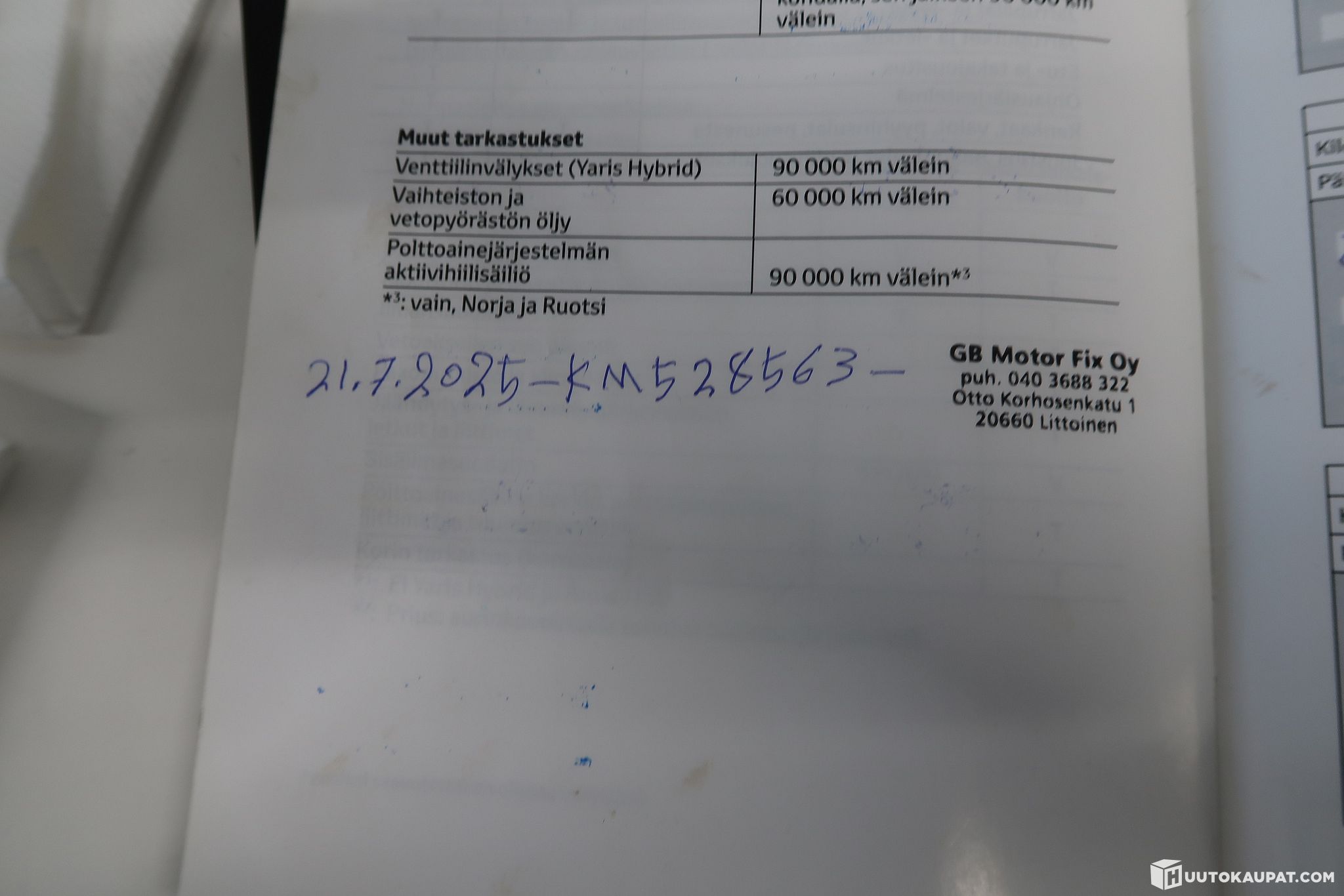 • Huoltokirja