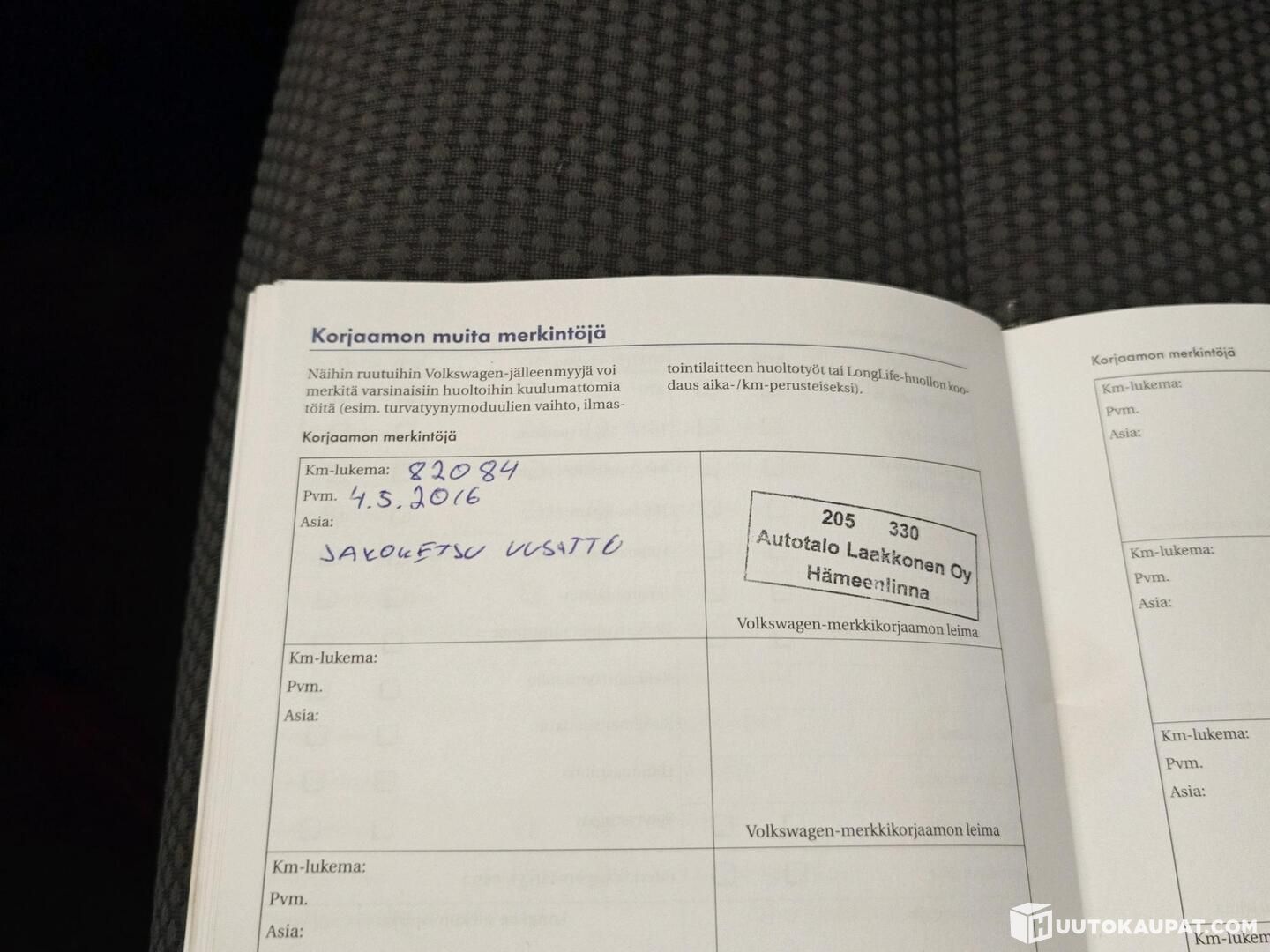 Viimeisin jakoketjun vaihto tehty 82 084 kilometriä ajettuna 5 / 2016