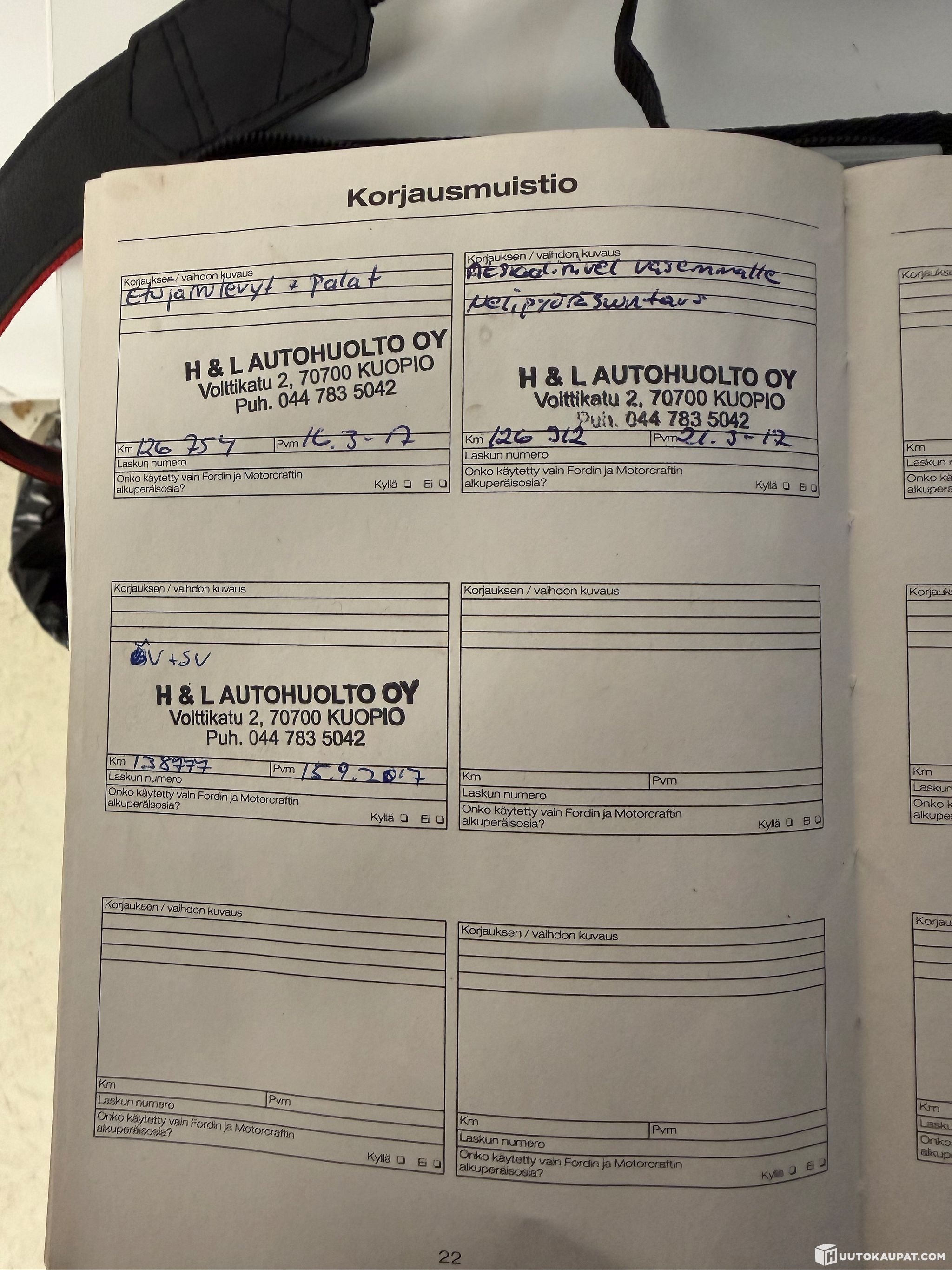 Ford omaa erittäin säntillisen huoltokirjan ja auton moottori on vaihdettu 266tkm kohdalla.