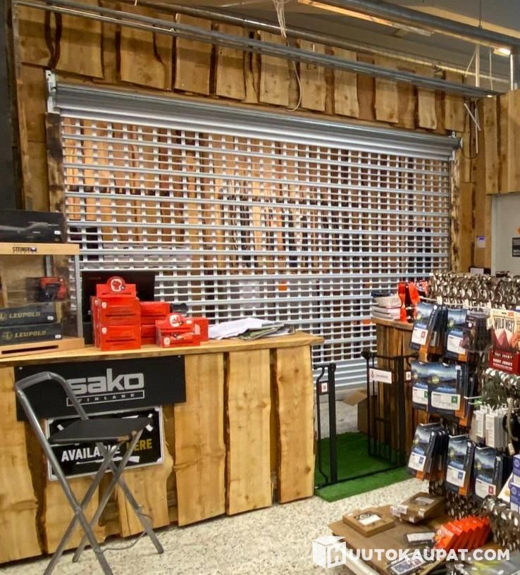Myydään rullasäleikkö / rullaovi, joka on irrotettu käytöstä. Kohde on ehjä ja ollut aiemmin liiketilassa käytössä (katso kuvat). Sopii esimerkiksi liiketilan, varaston tai hallin sulkemiseen ja suojaamiseen.