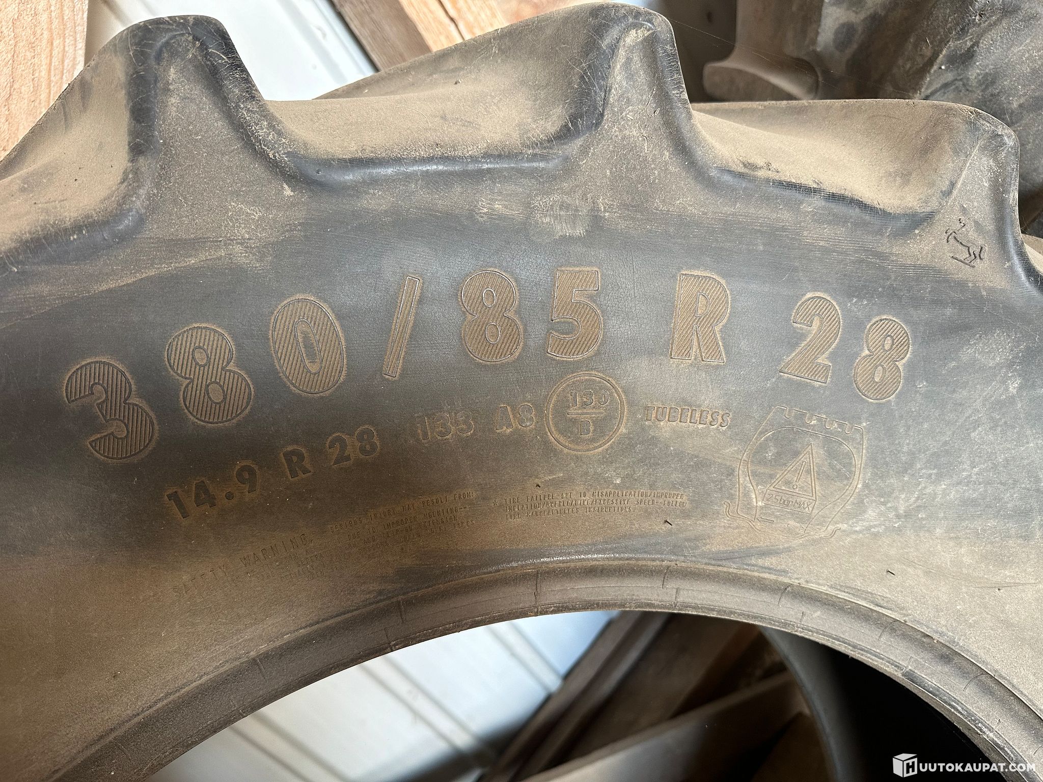 Ehjänä otettu pois vanteilta, nyt nojannut seinään usean vuoden.