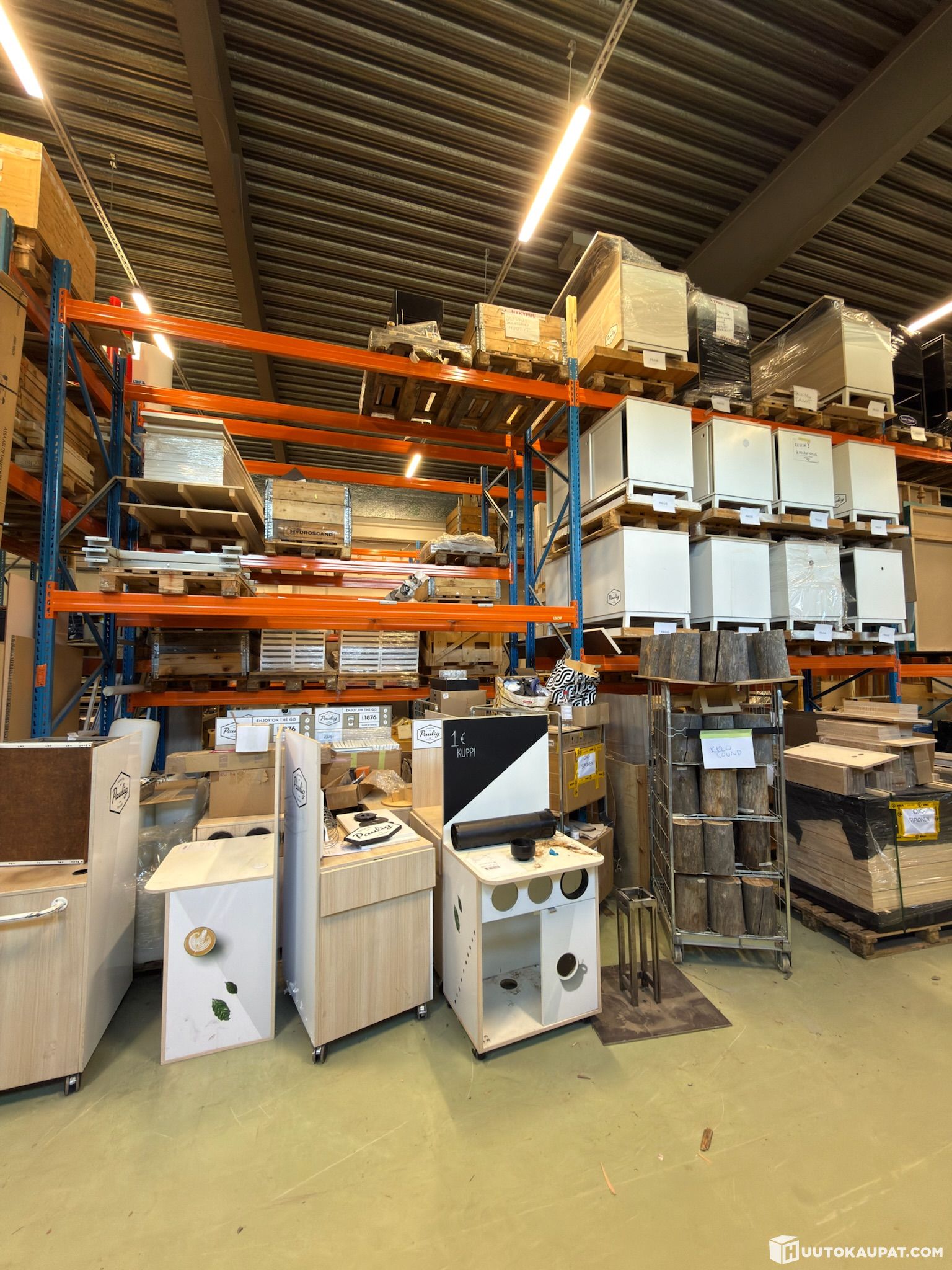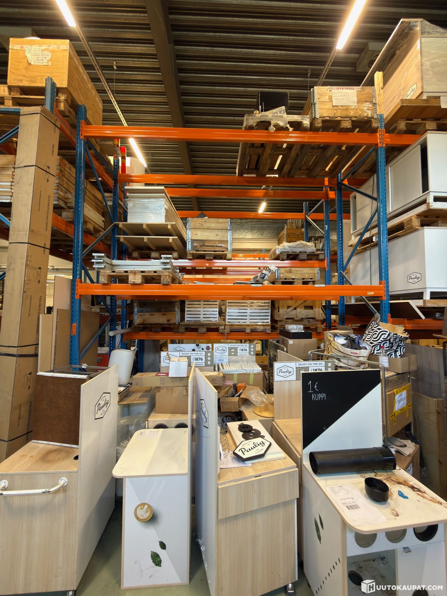 Hyllyissä/kuvissa näkyvät tavarat eivät kuulu huutoon ja hyllyt tyhjennetään ennen luovutusta.