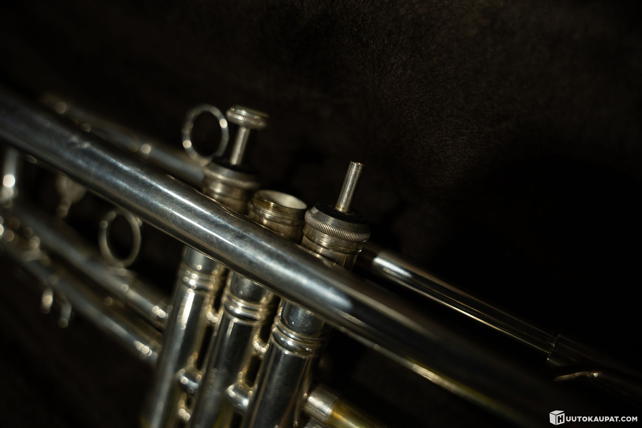 Trumpetti B, Holton MF. Suomessa harvinainen Holton mf trumpetti. Soittimessa on runsaasti puutteita. kakkos