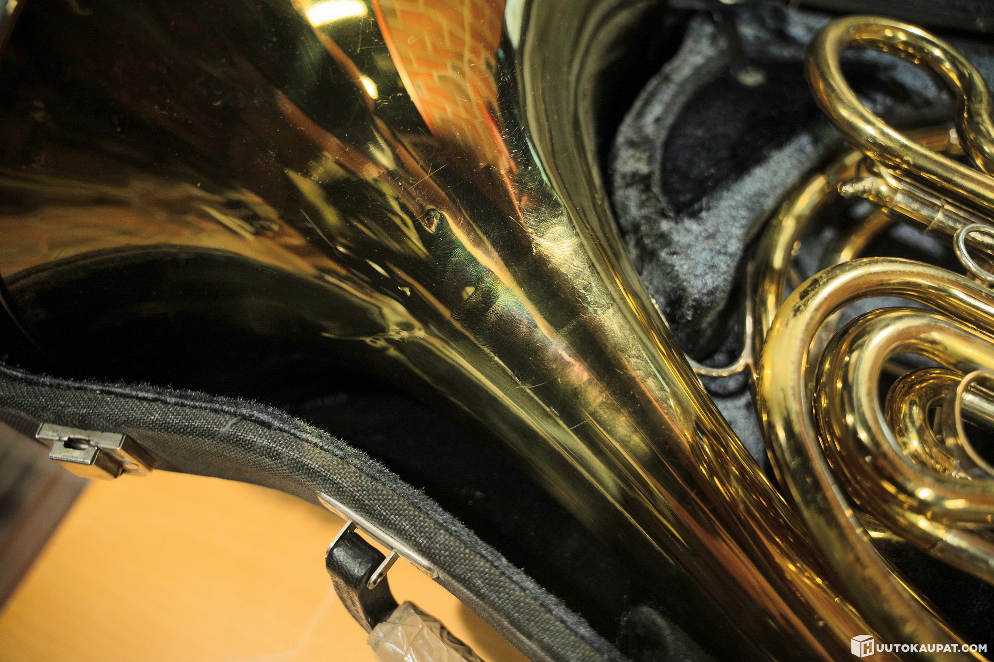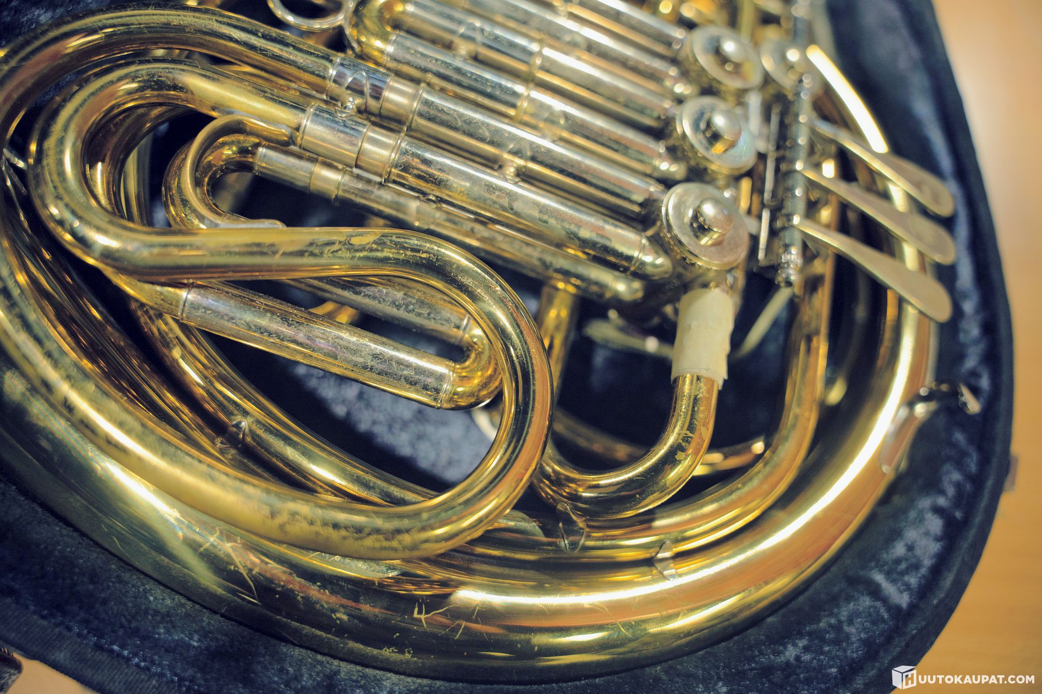 Käyrätorvi F/BB, Holton H-180 Farkas. Paljon pintavikaa ja pienehköjä lommoja. Todettu ammattilaiskäyttöön