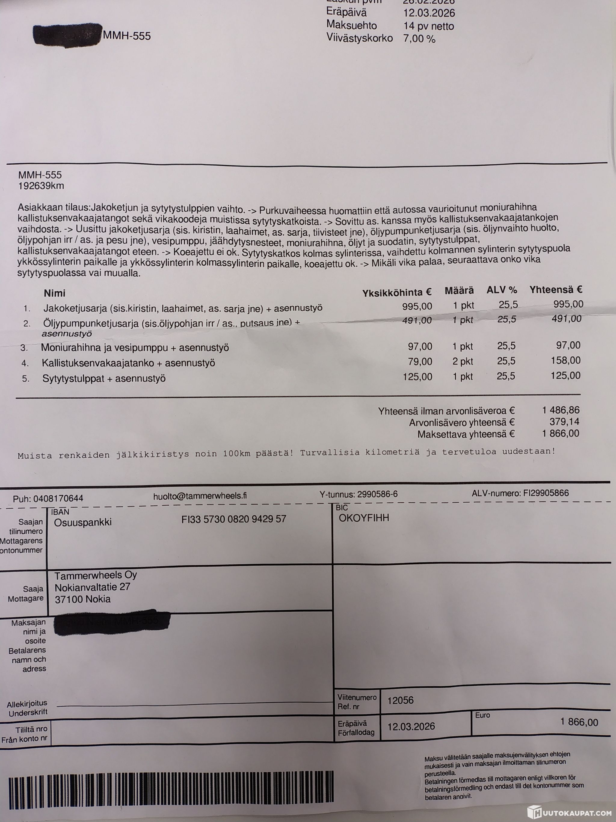 Verkkopankkimaksu, maksuaika 24 tuntia tarjouksen hyväksymisestä.