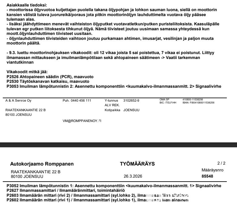 • Huoltoa pyytää