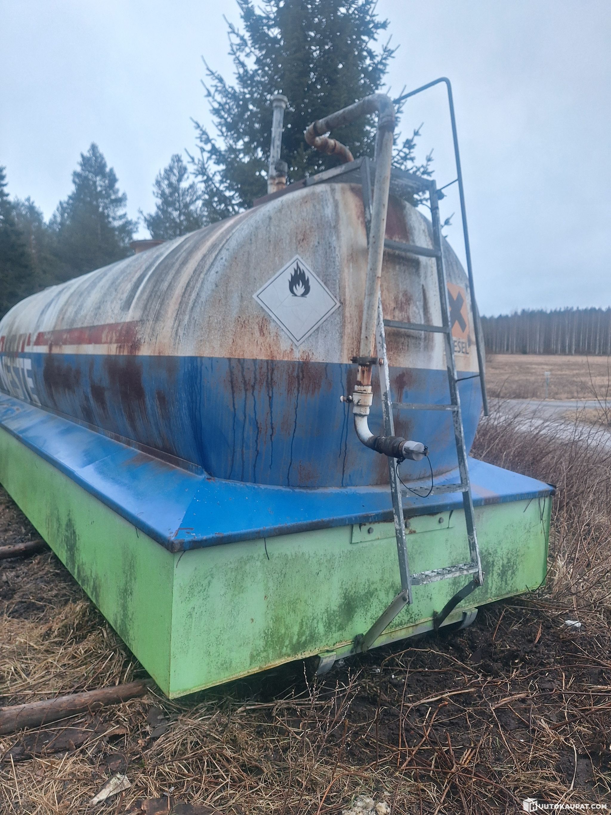 Myydään tarpeettomaksi jäänyt 20 m3 polttoainesäiliö vaihtolavakiskoilla ja suojavaipalla.