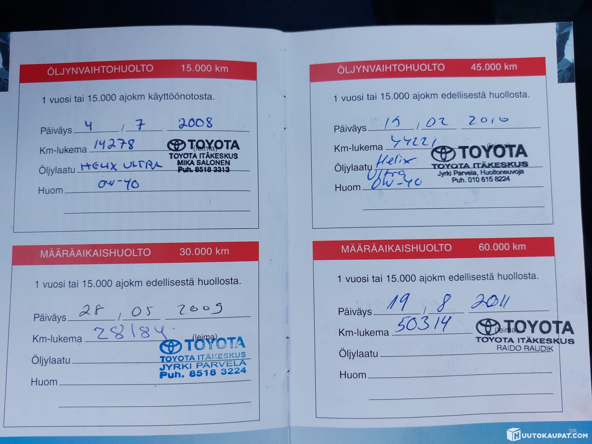 Kahdet hyvät renkaat ja hyvä huoltohistoria.