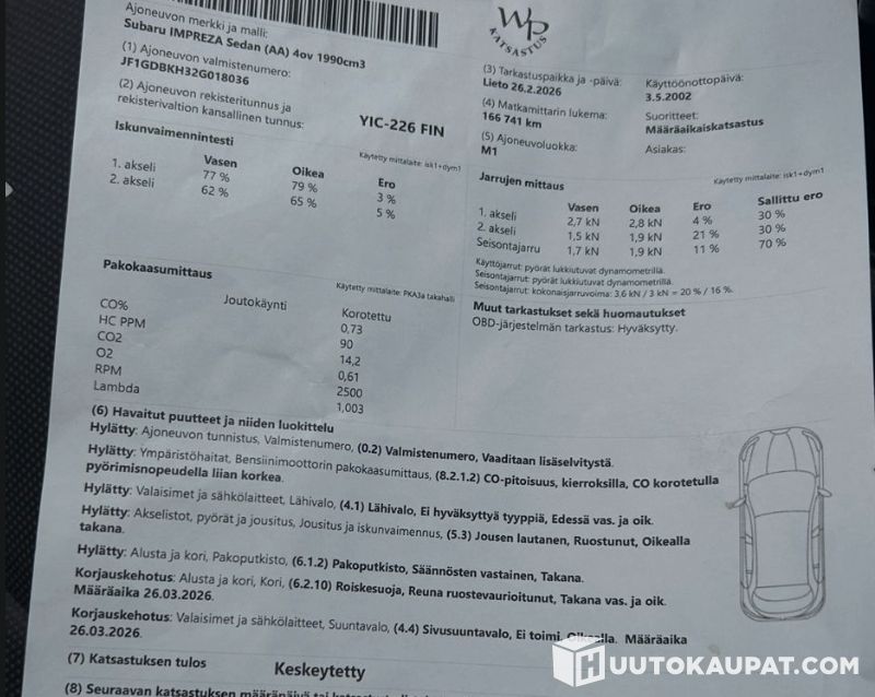Nyt joutaa makia Impreza jollekkin innokkaalle. Katso viimeinen kuva katsastuksesta!