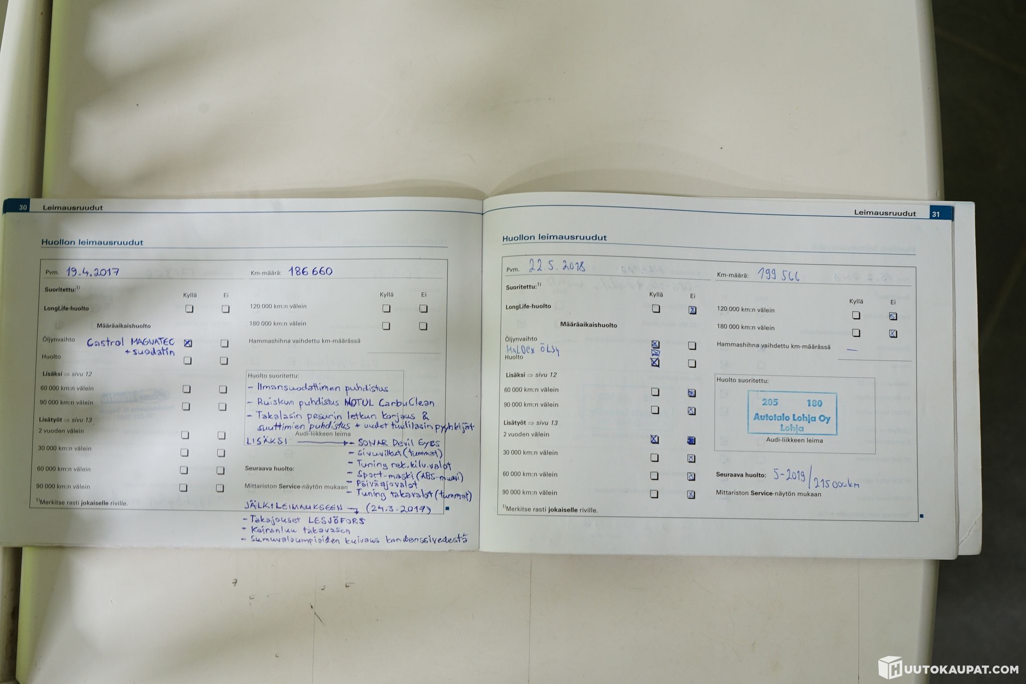 Ennen auton myyntiinlaittoa suoritimme autolle koeajon ja kuntoarvion, joiden aikana teimme autosta seuraavat havainnot:
