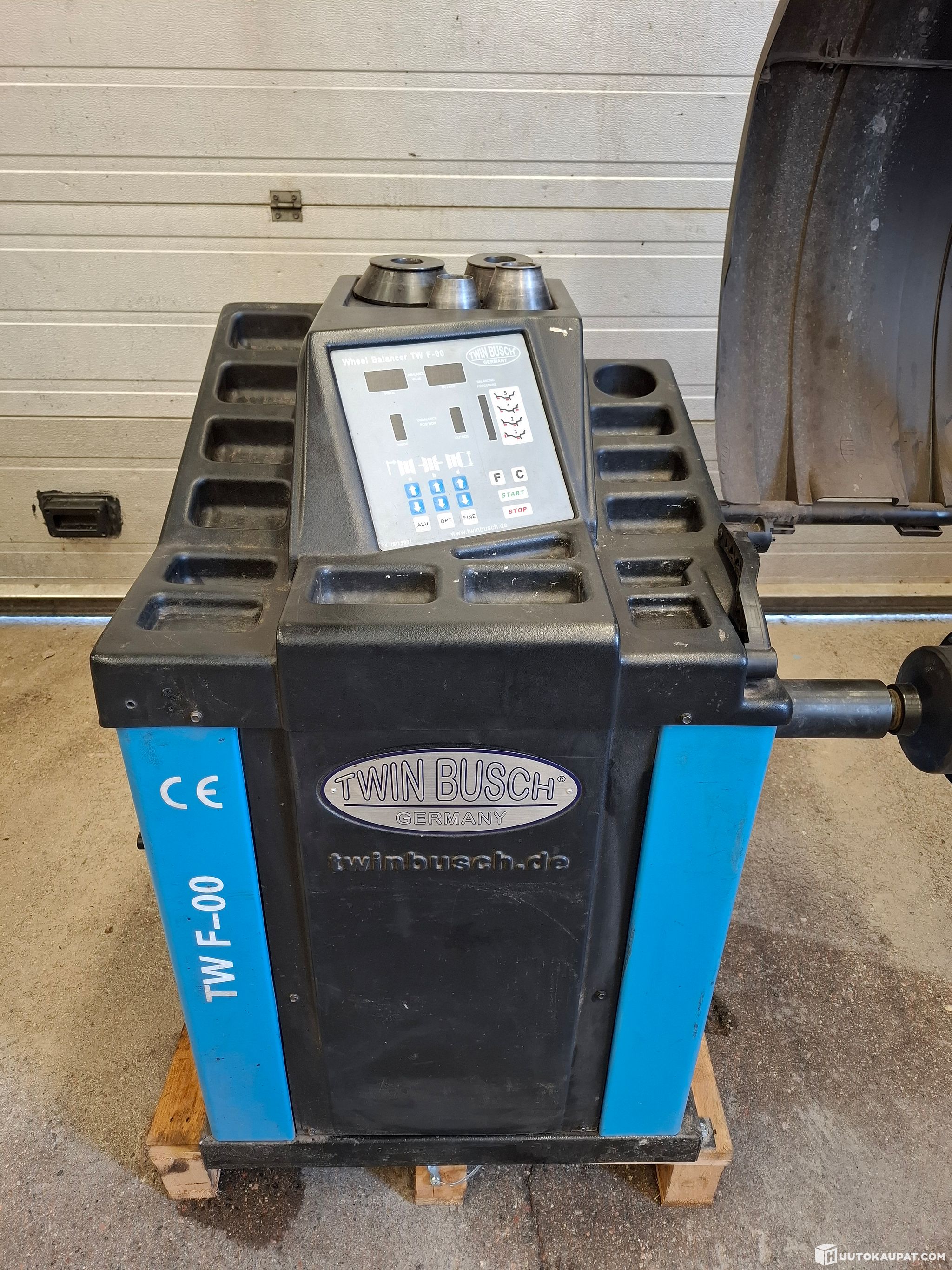 Täysin toimiva tasapainotuskone auton tai moottoripyörän pyörille.