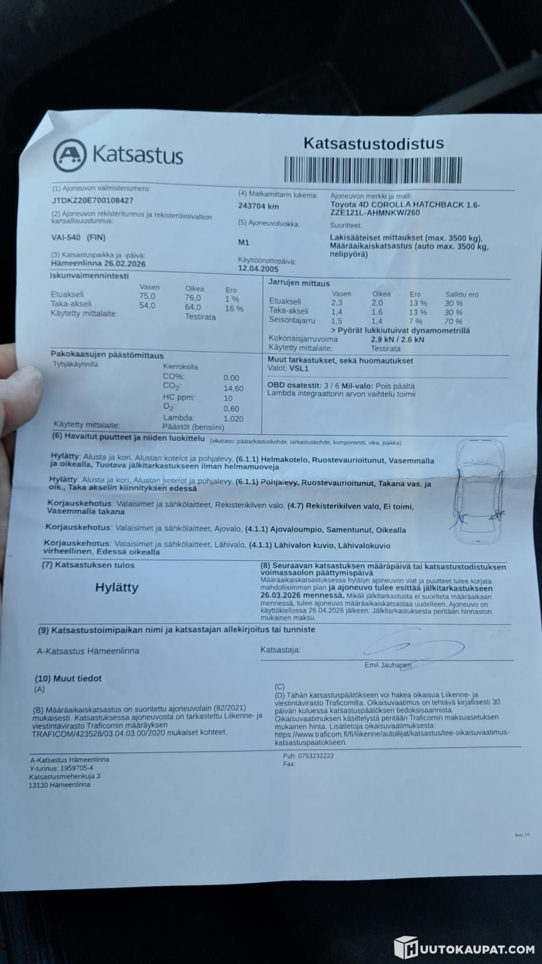 Viimeisin huolto tehty 243 704 km kohdalla 02 / 2026