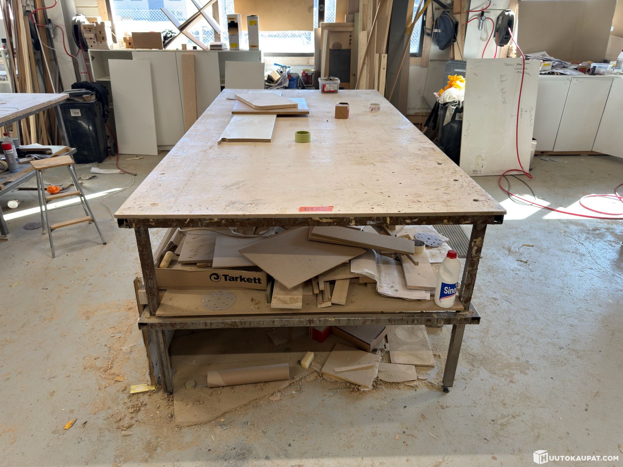 Työpöytä/verstaspöytä 3000x1500 sisältöineen.