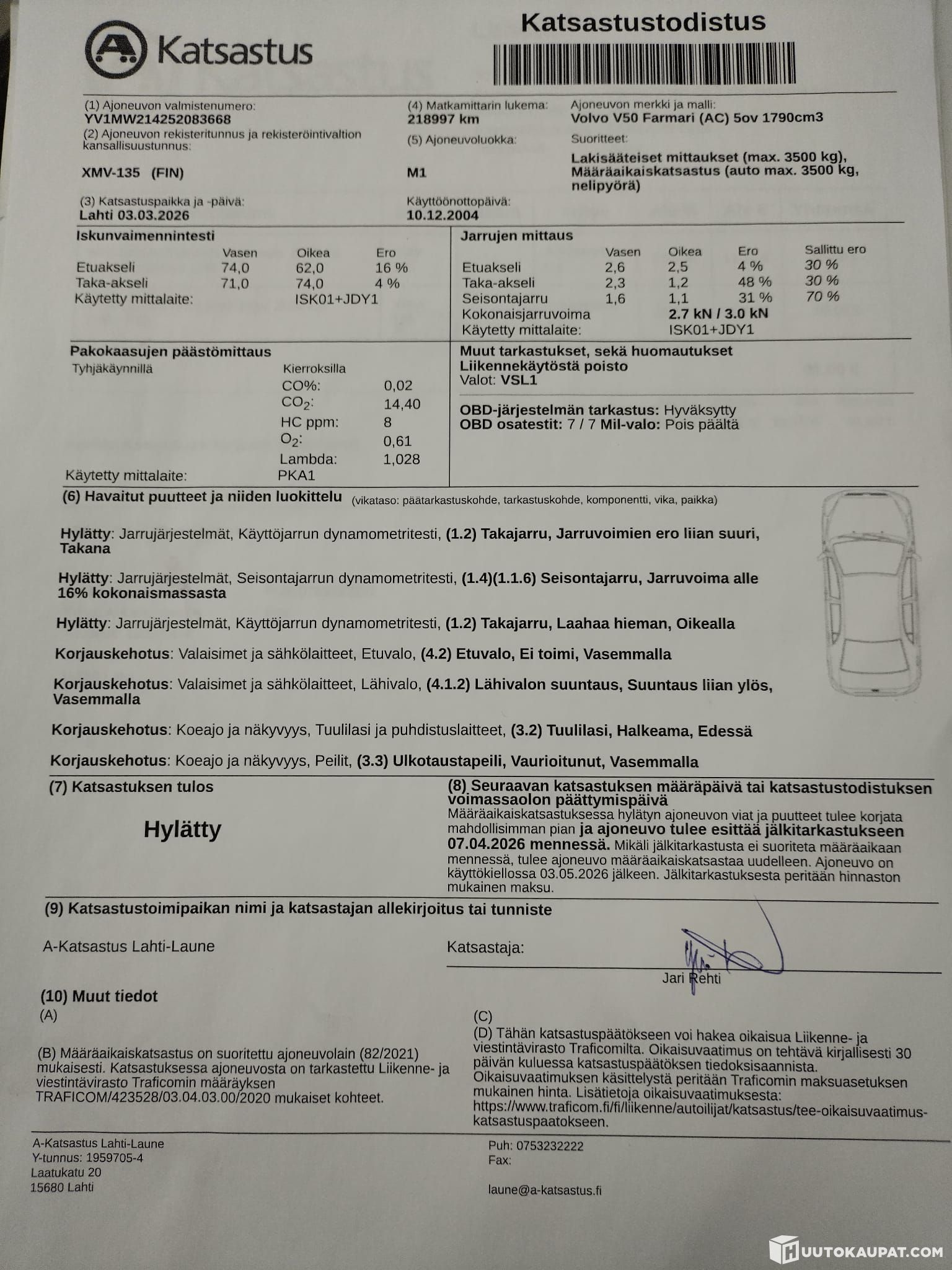 Ennen auton myyntiinlaittoa suoritimme autolle koeajon ja kuntoarvion, joiden aikana teimme autosta seuraavat havainnot: