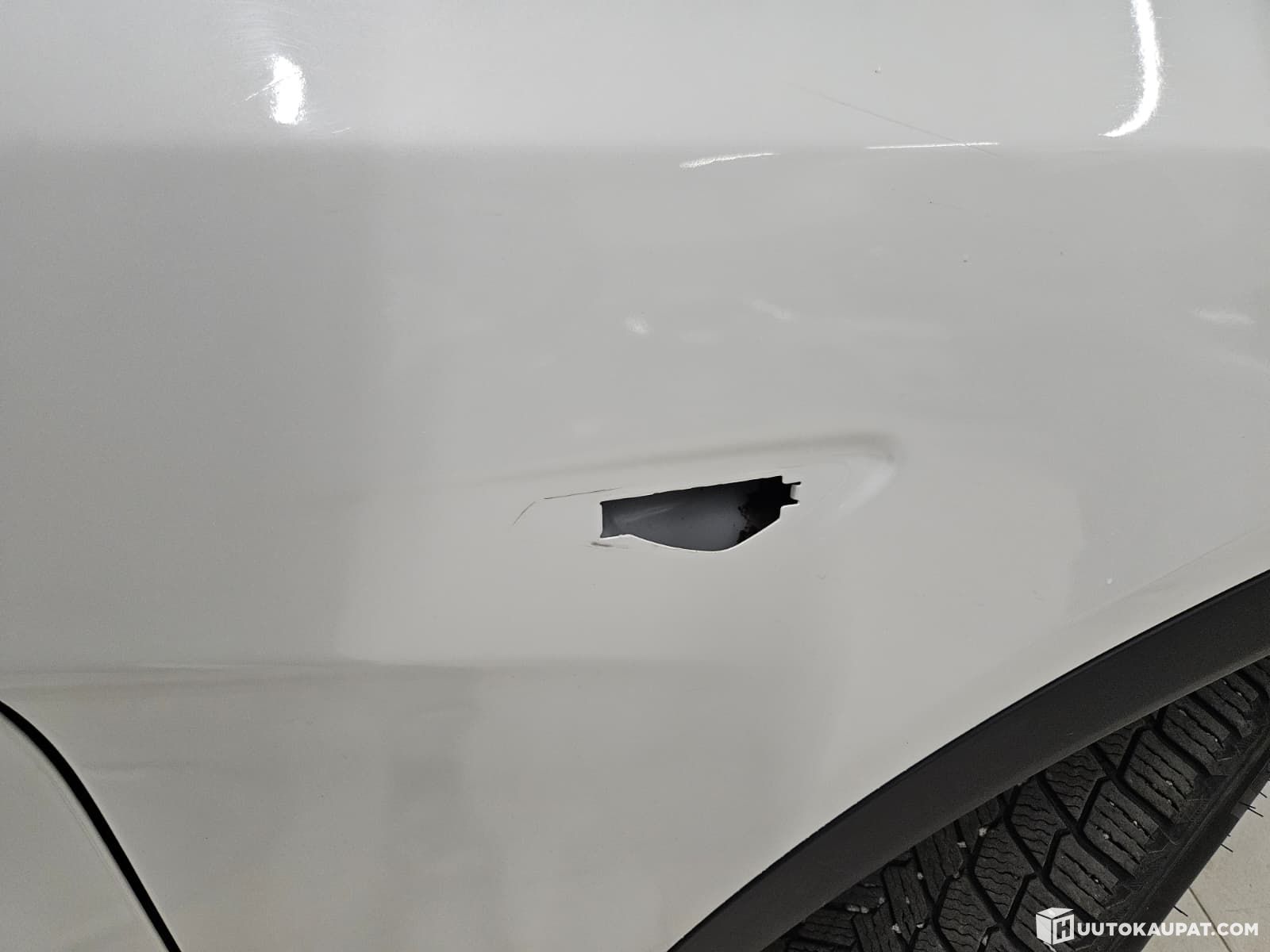 Muutama pieni kosmeettinen haitta, pellissä muutama kiveniskemä ja apukuskin puolelta renkaan yläpuolelta pieni muovilätkä uupuu