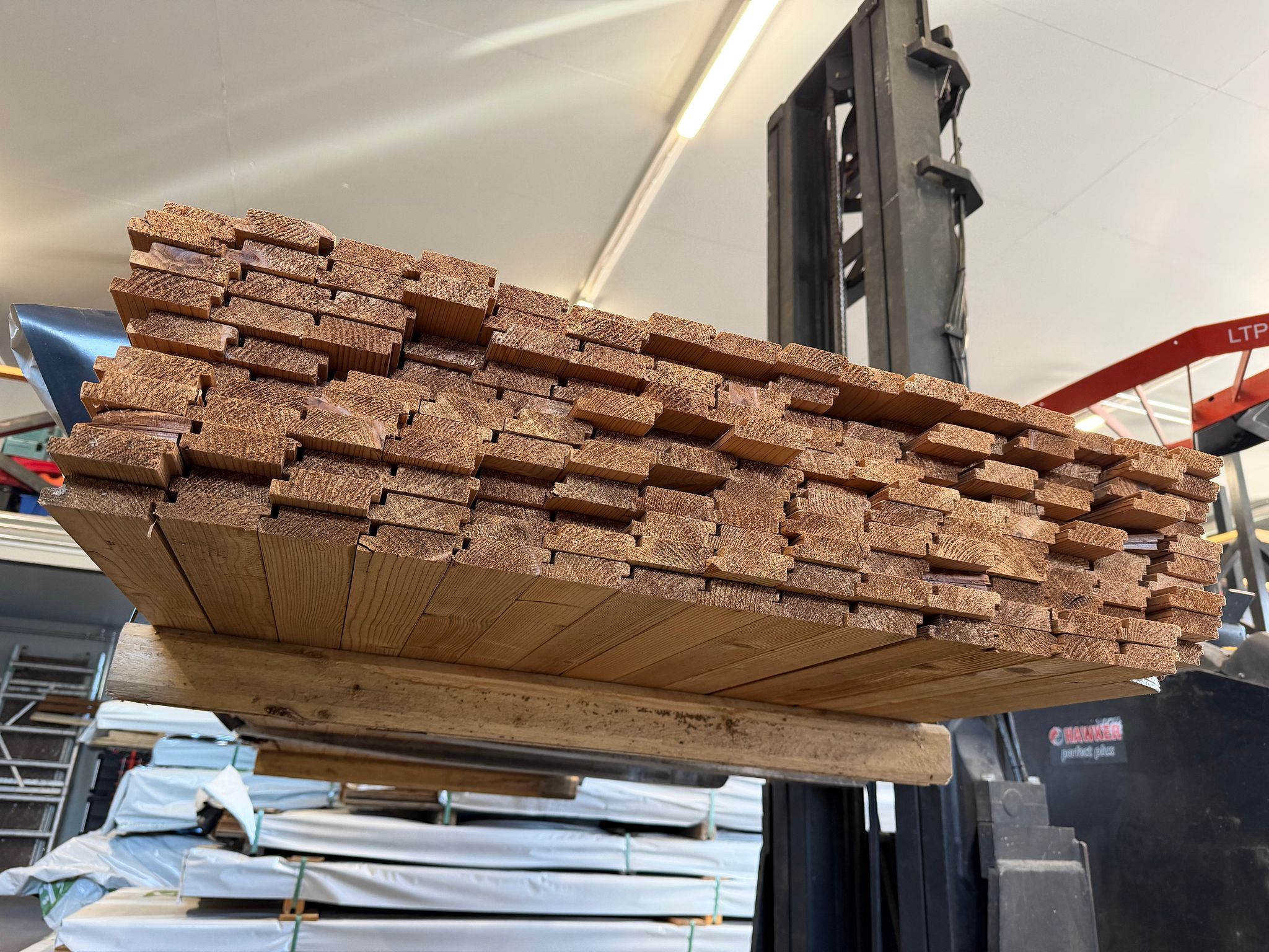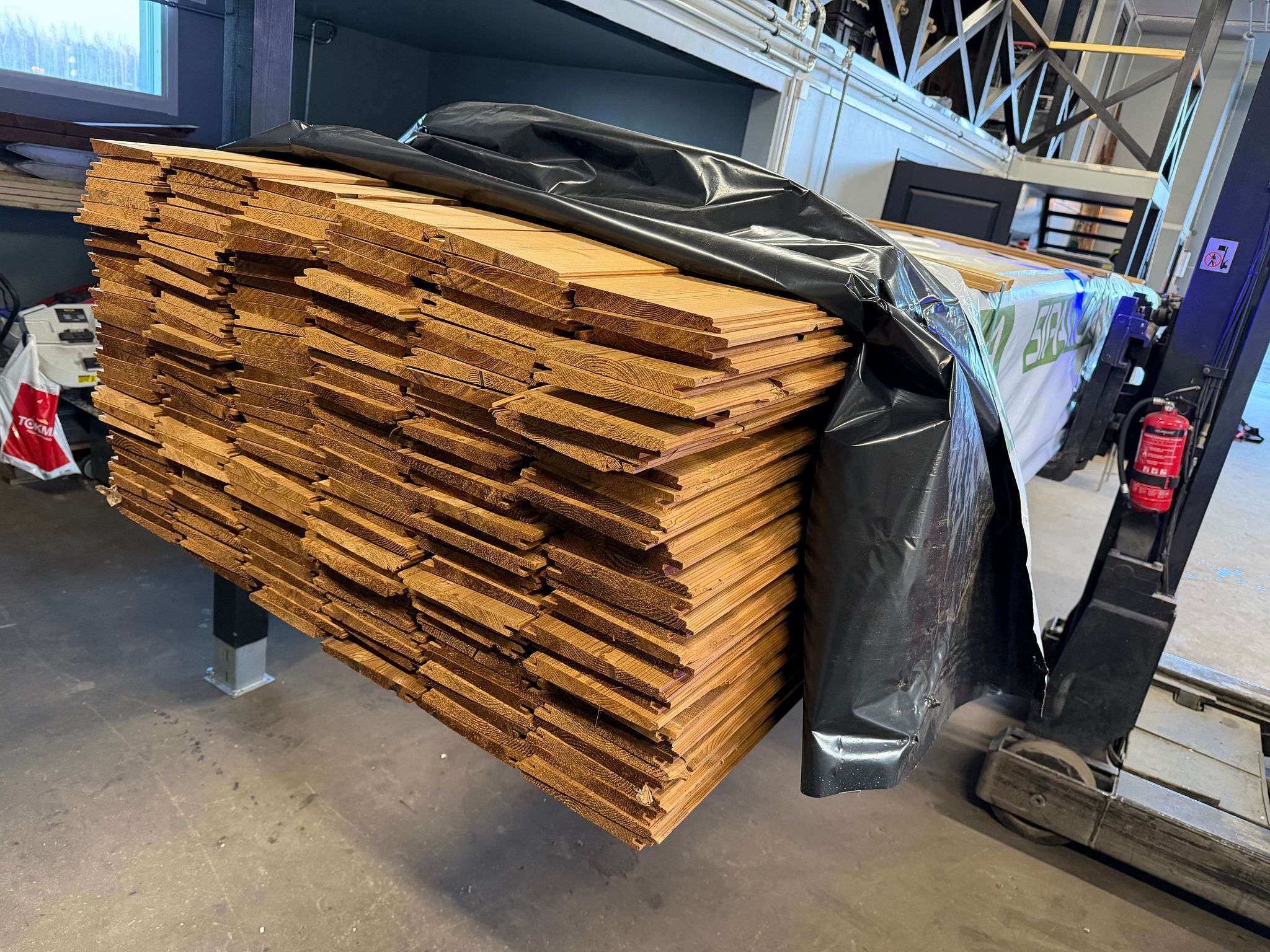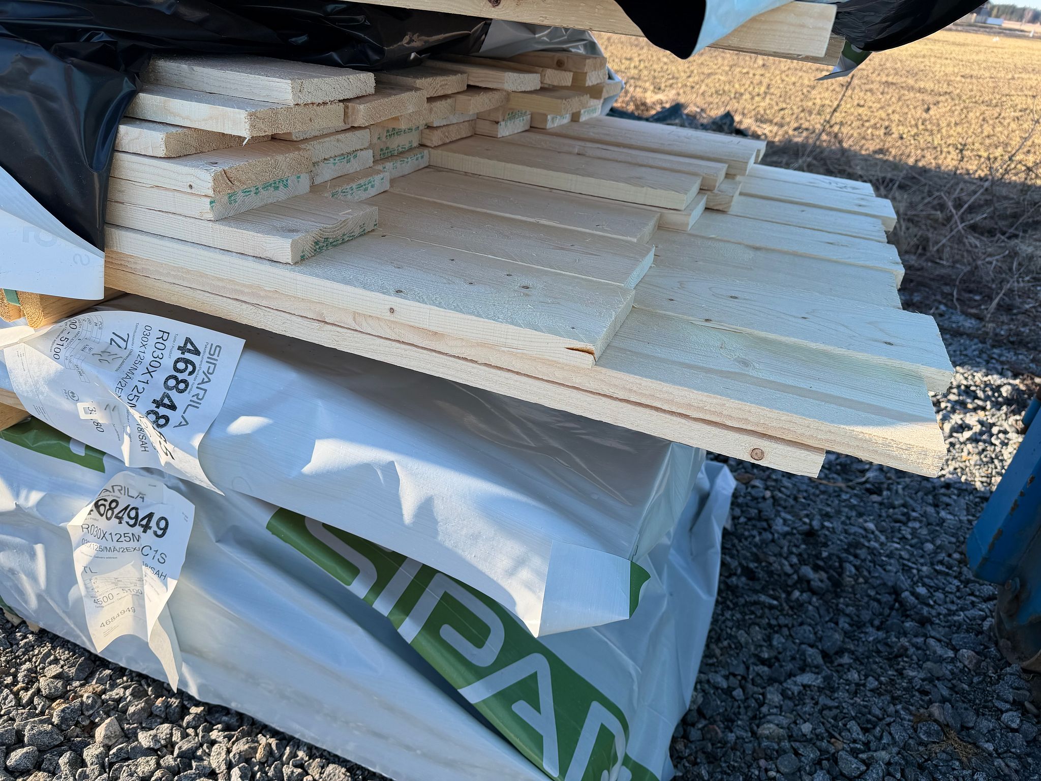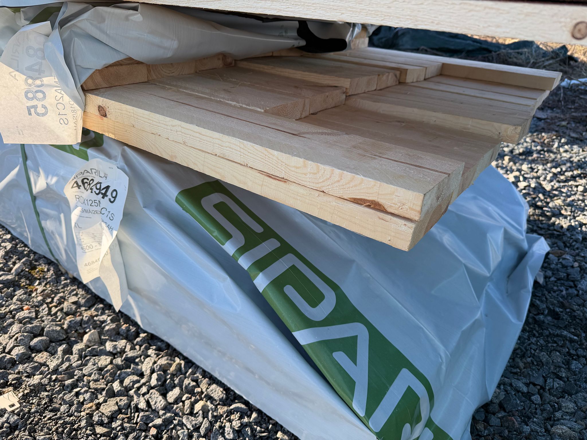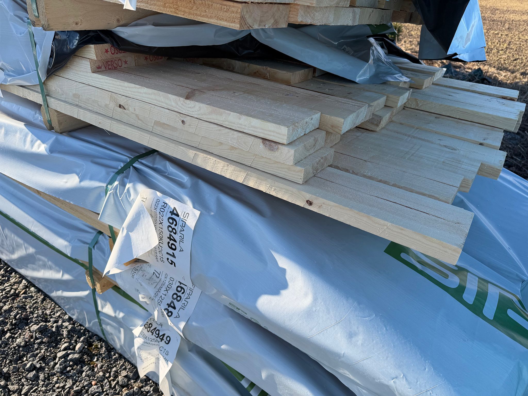 Pakattuna valmiiksi kuljetuslavoille jotka menevät kuormaan päällekkäin