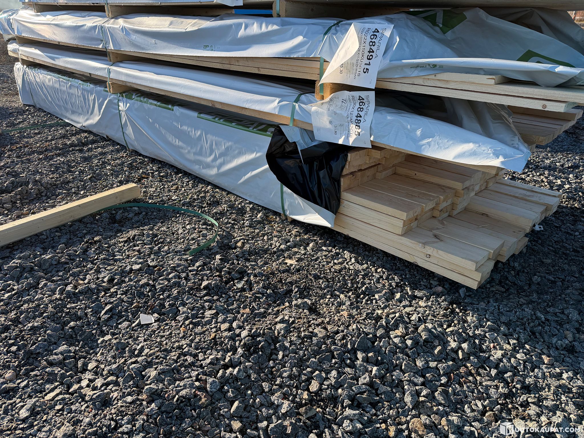 Monikäyttöistä sahatavaraa tehtaan paketissa.