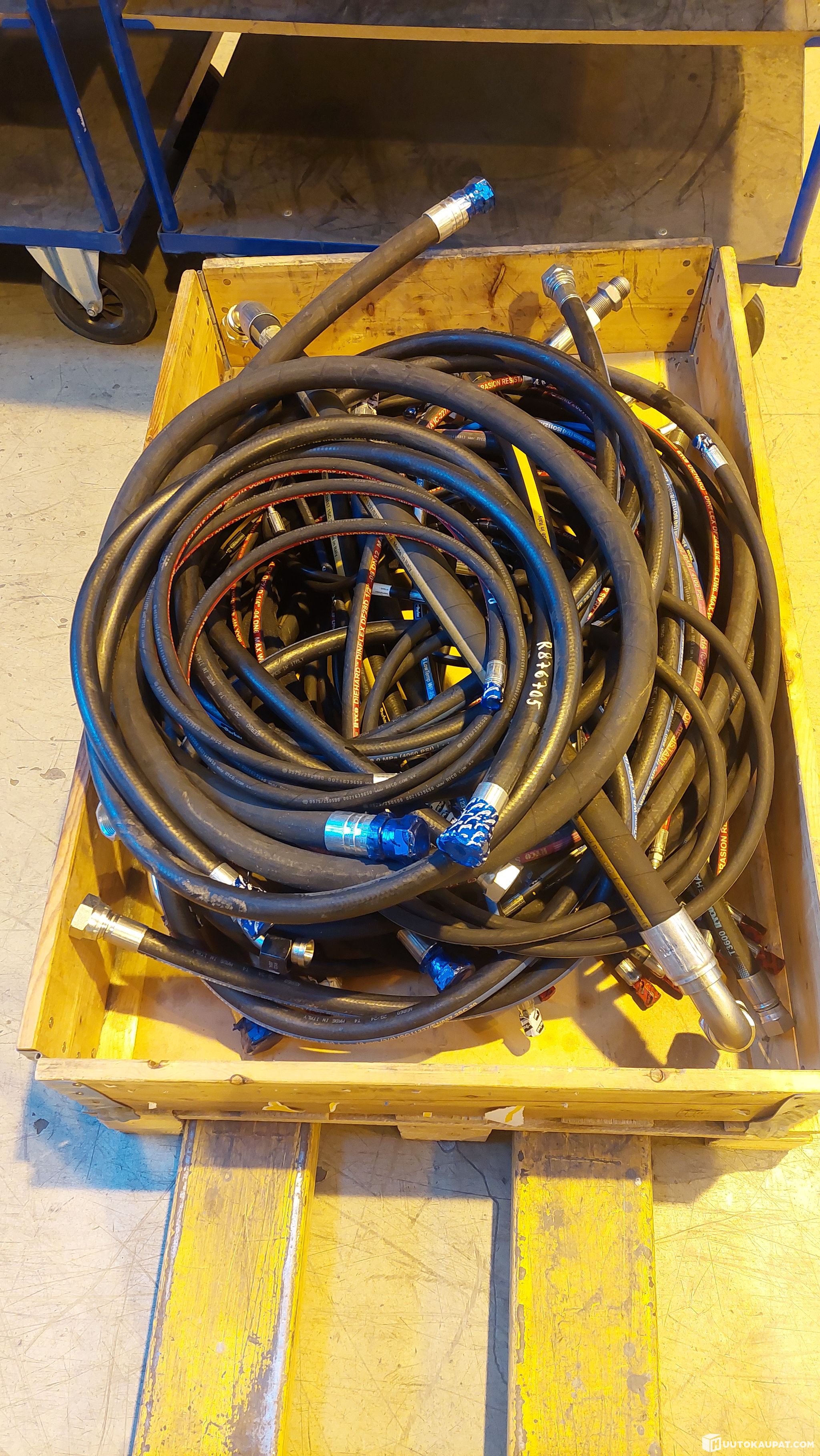 Lavallinen metsäkoneen hydr.letkuja, suurin osa letkuista JIC-päillä