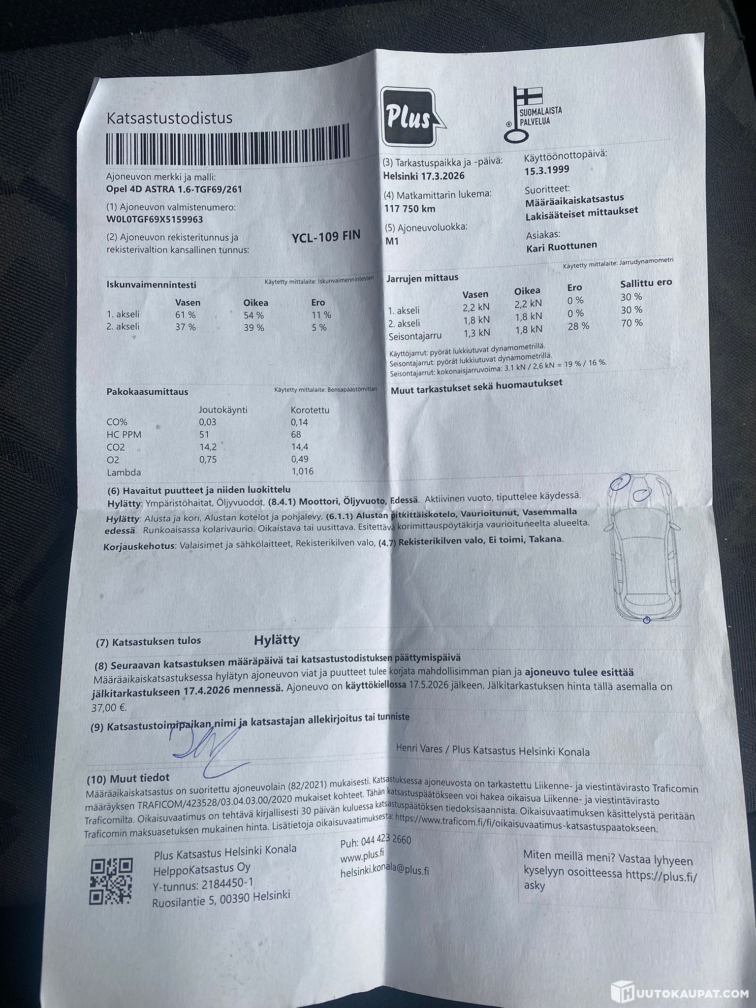 Katsastus hylätty vikalista kuvissa.