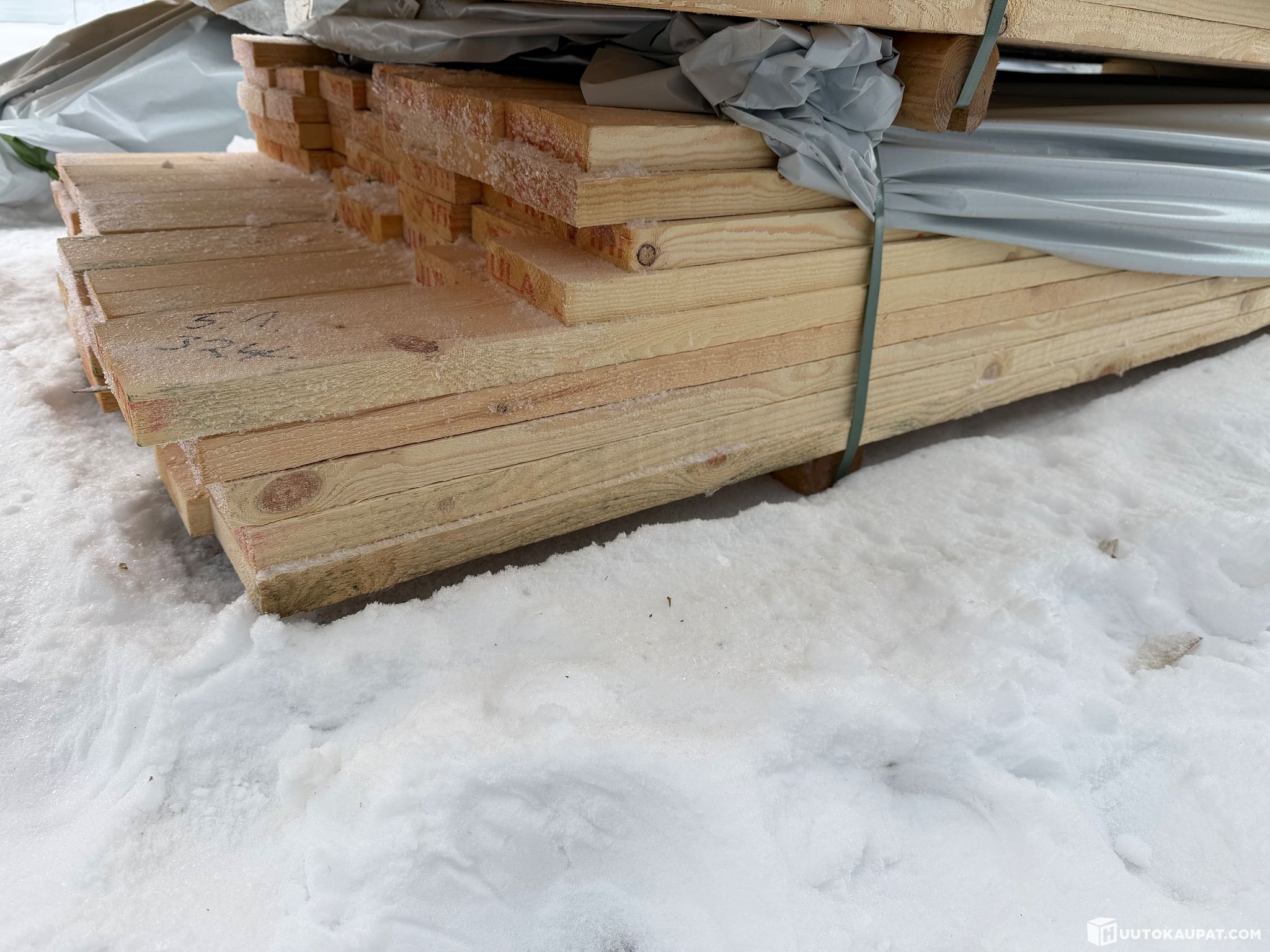 Monikäyttöistä sahatavaraa tehtaan paketissa.