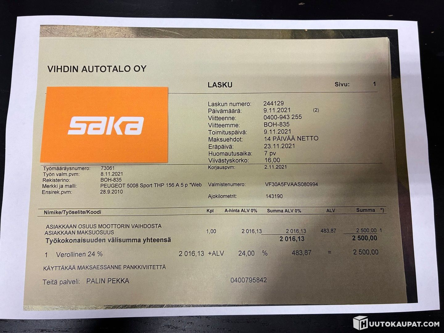 Moottori vaihdettu uuteen merkkiliikkeessä 11-2021 / 143tkm kohdalla. (kuitista kuva)