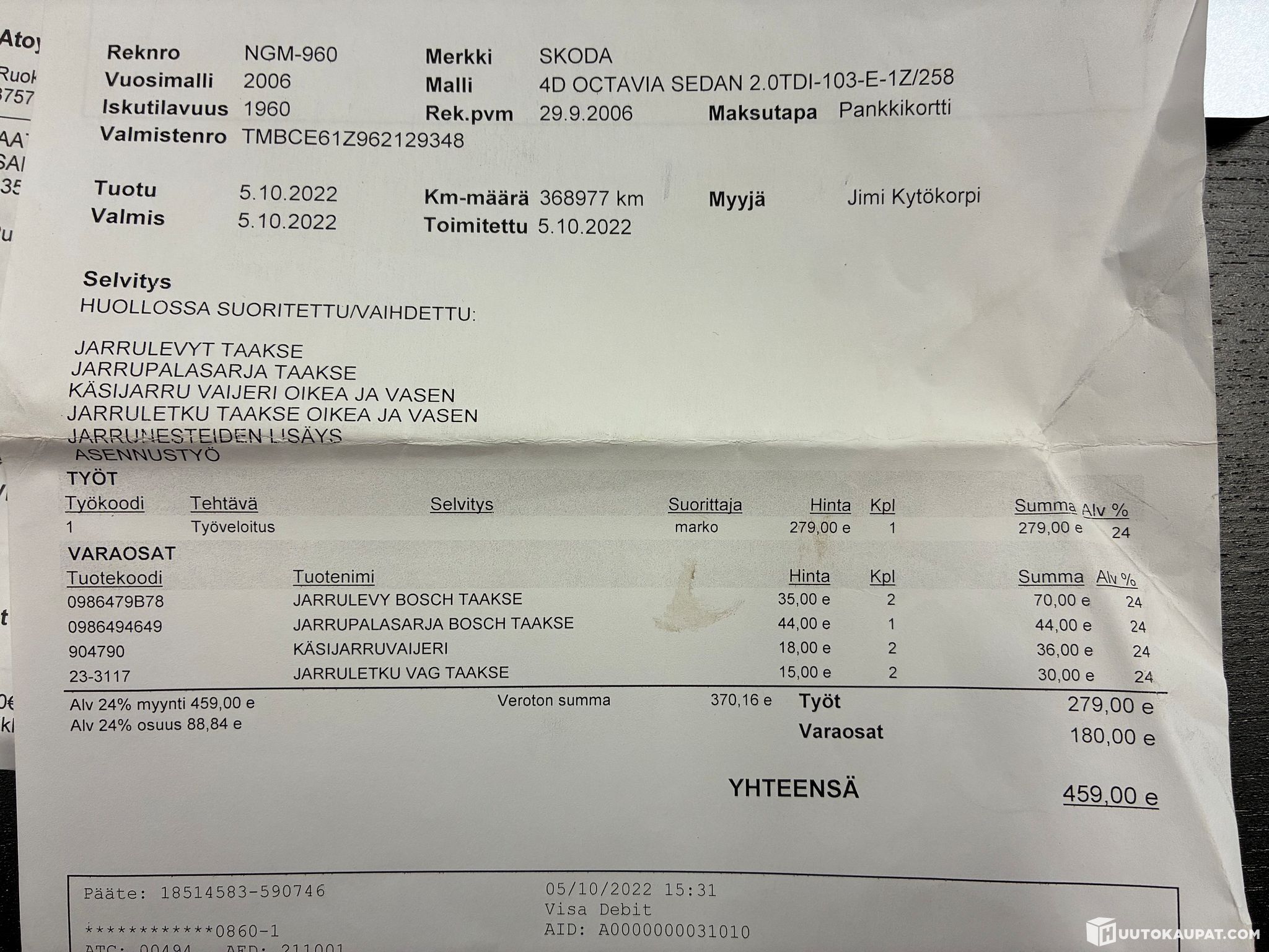 Rinta-Joupin Autoliike Oy ilmoittaa, Huutokaupat.com myy
