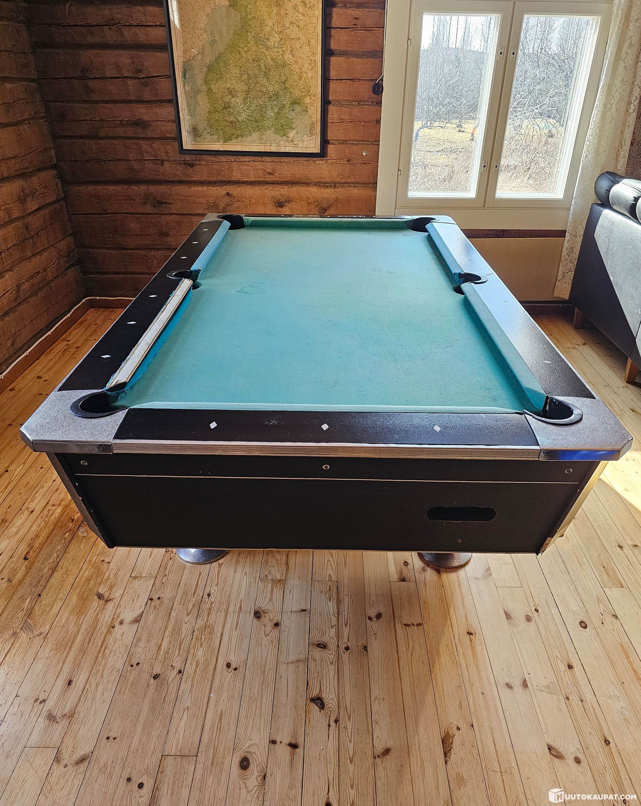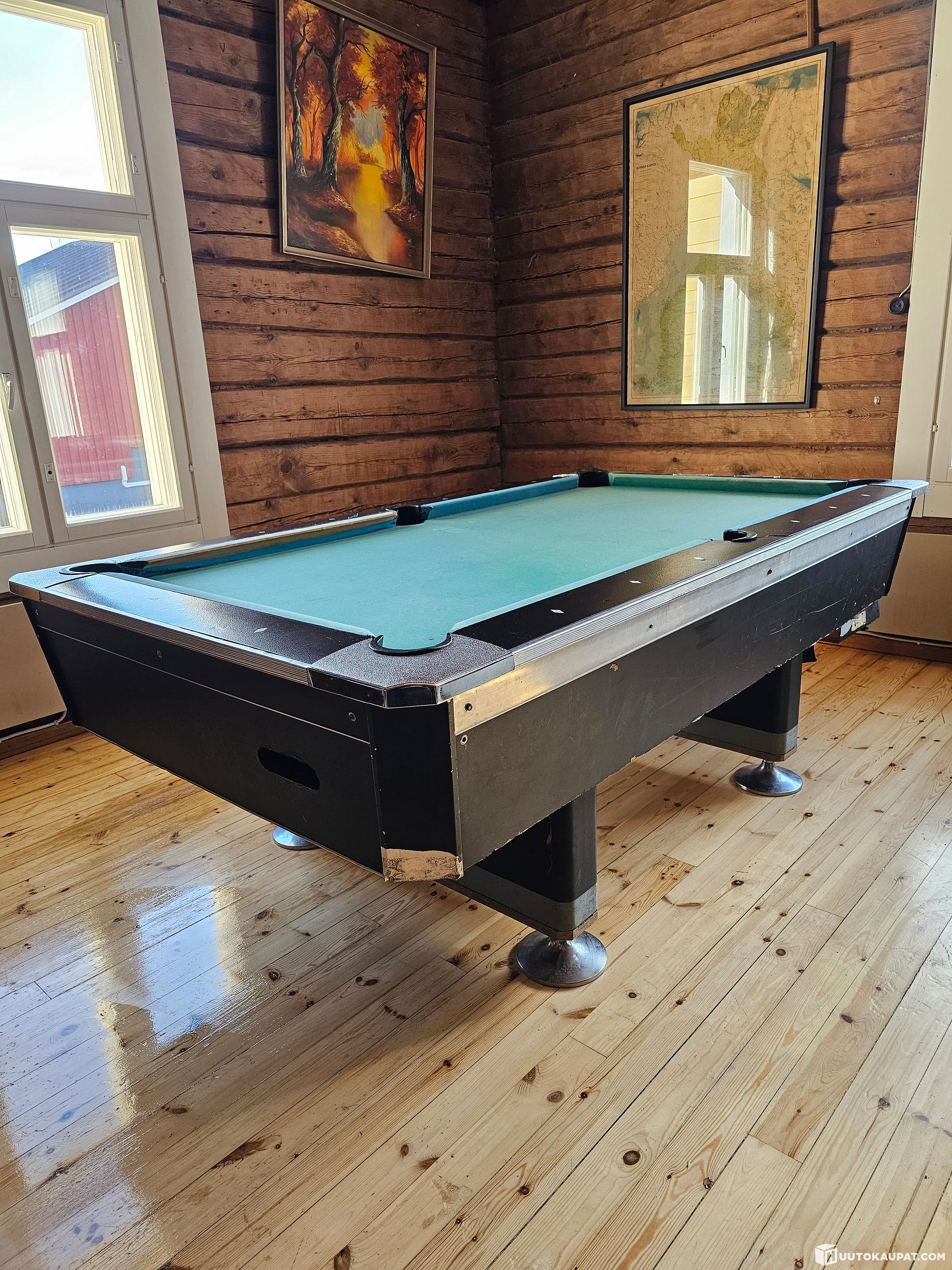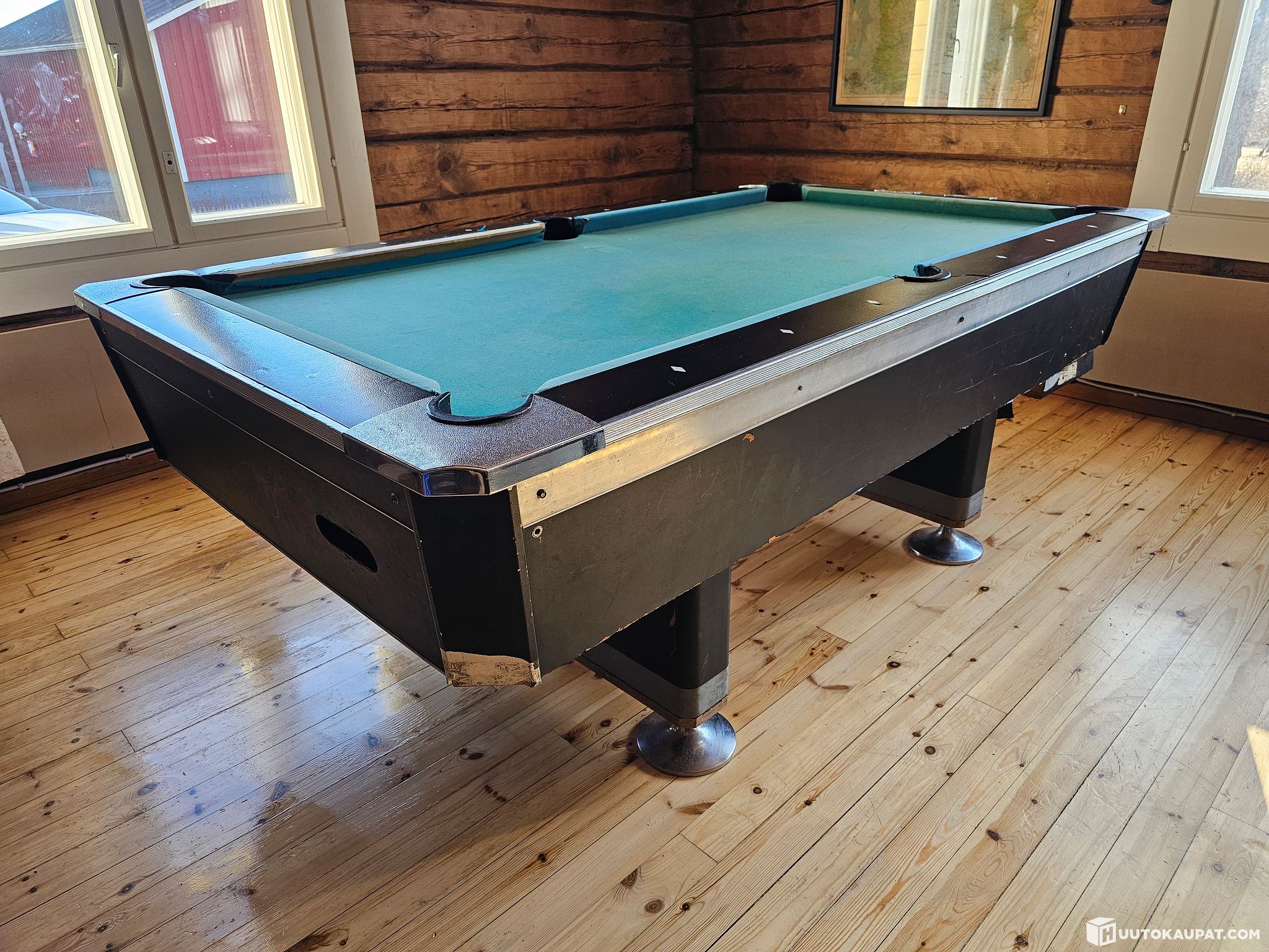 Myynnissä tukevarakenteinen biljardipöytä kivilevyllä. Pöytä on rakenteeltaan laadukas ja painava, mutta vaatii kunnostusta ennen käyttöönottoa.