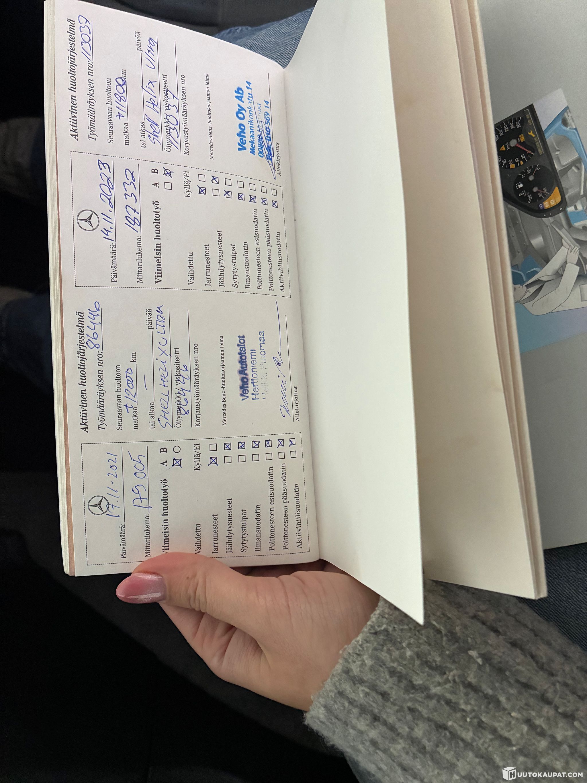 Huollettu säännöllisesti Veholla (merkinnät huoltokirjassa)
