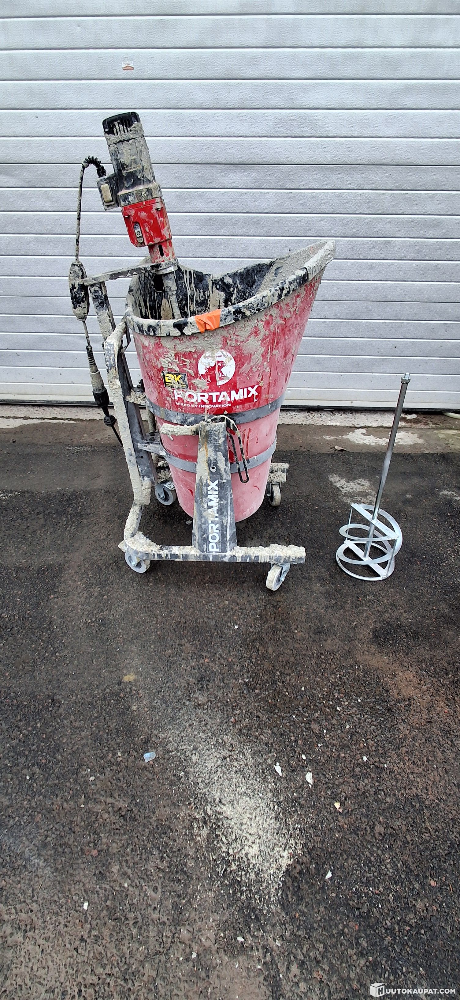 Koneella on sekoitettu epoksimassaa. Ei ole kovin siistissä kunnossa ulkoisesti.