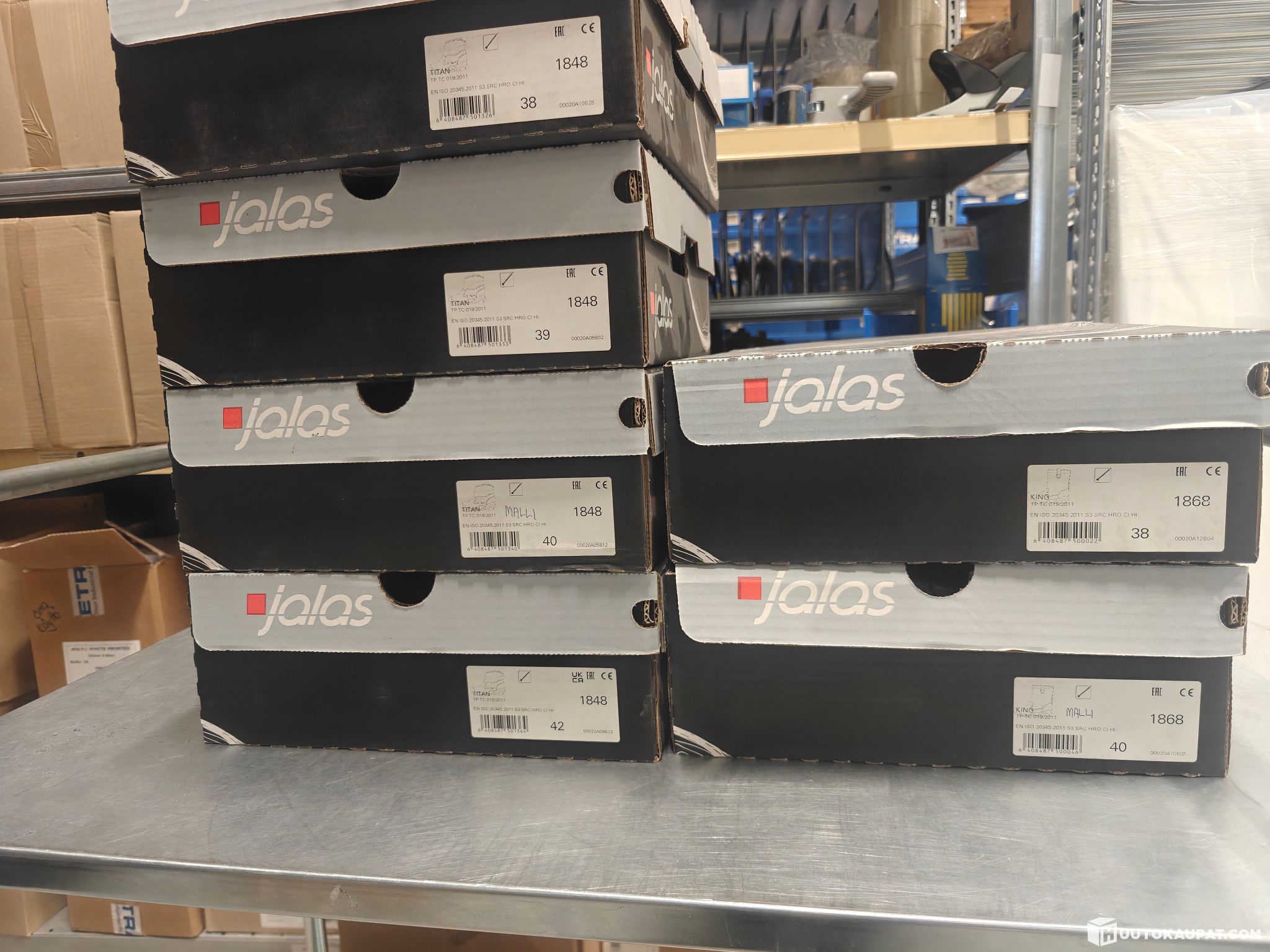 Jalaksen turvakenkiä 6 paria.