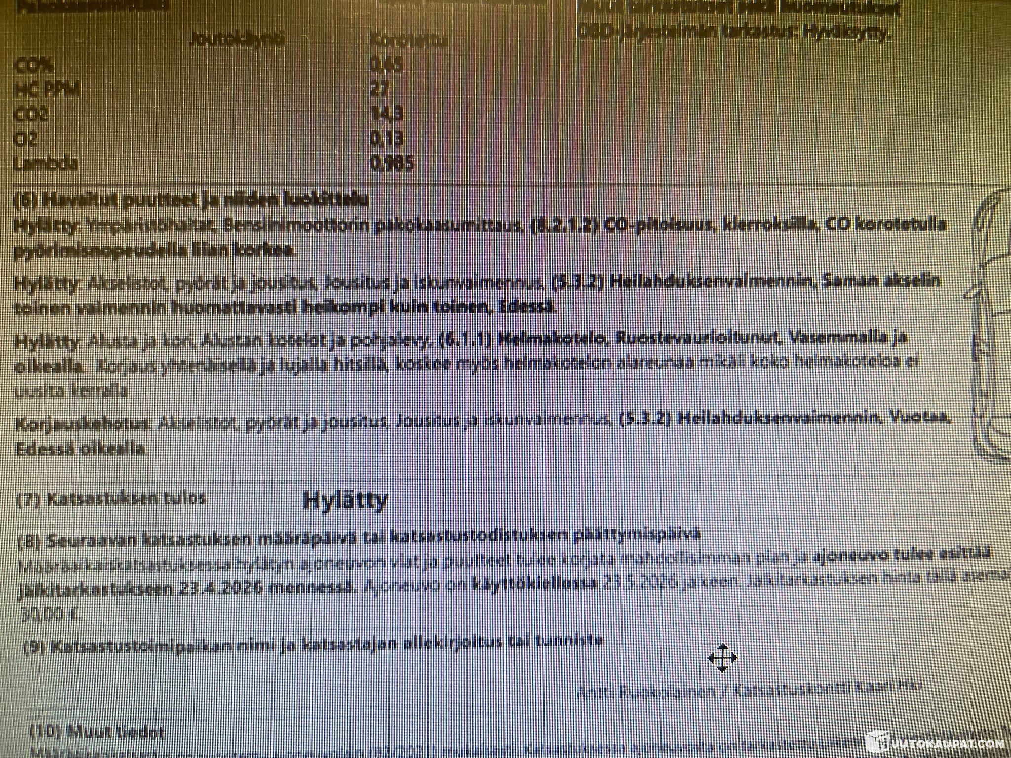 Auto ei ole ollut toimestamme teknisessä kuntotarkastuksessa eikä kaikkien varusteiden toimivuutta ole testattu. Siinä saattaa olla piileviä vikoja, joita koeajolla emme havainneet. Autoon on mahdollista tulla tutustumaan tarkemmin ennen sitovan huudon tekemistä. Sovithan tulostasi etukäteen, kiitos.